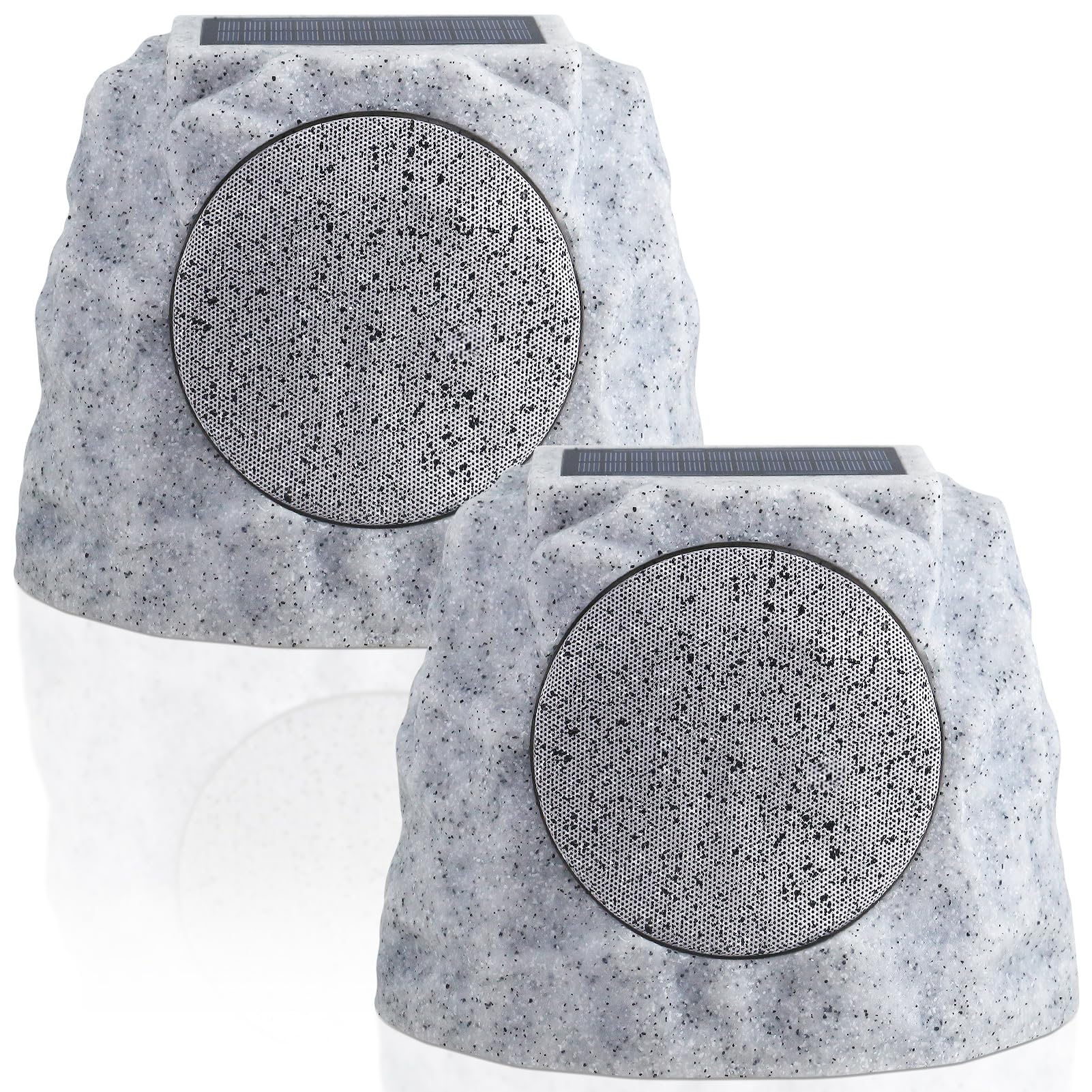 - Sound Quality & Packaging: The speaker of solar rock speakers has 2 transmission signals, so that the stereo effect can get twice the quality of surround sound, and the live music atmosphere can be fully released. Packing list: LED stone speaker x 2, USB charging cable x 2, user manual x 2