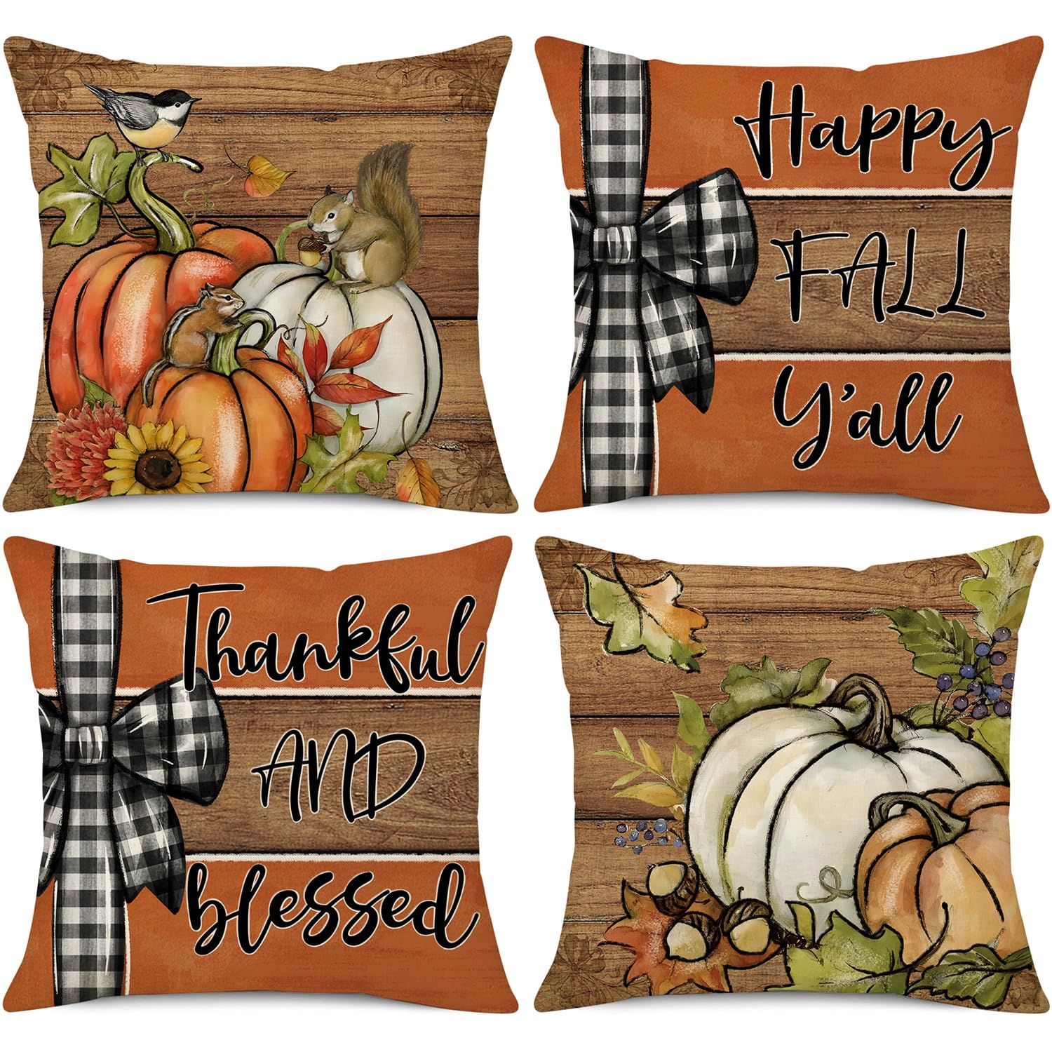 Details: NIGHTWISH Fall Pillow Covers Set of 4 Thanksgiving Decorations Squirrel Chestnut Pumpkin Outdoor Fall Decor Throw Pillow Covers Wood Striped Farmhouse Harvest Autumn Cushion Case for Sofa Couch