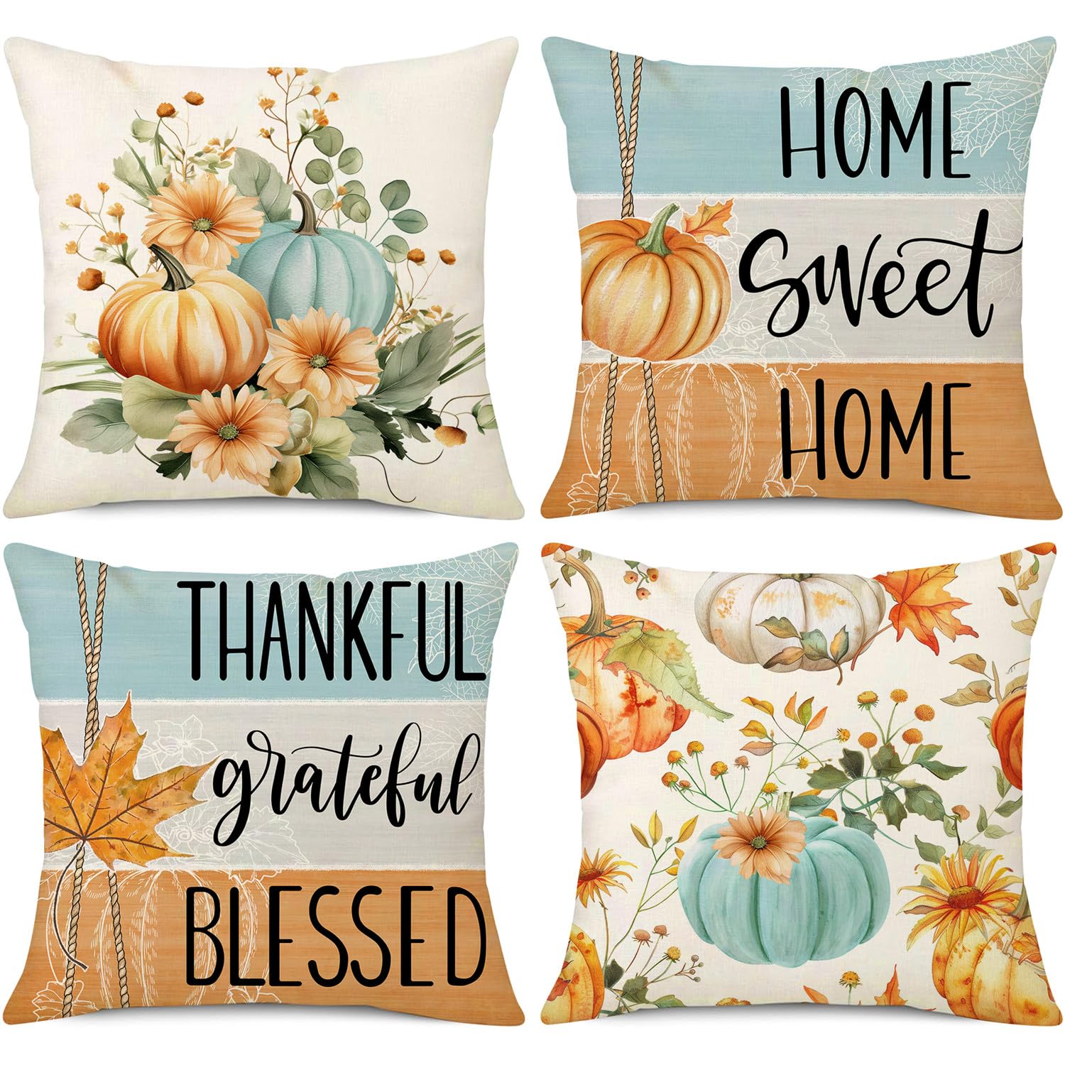Details: NIGHTWISH Fall Pillow Covers Set of 4 Thanksgiving Farmhouse Decorations Floral Pumpkin Outdoor Fall Decor Throw Pillow Covers Home Sweet Home Harvest Autumn Cushion Case for Sofa Couch