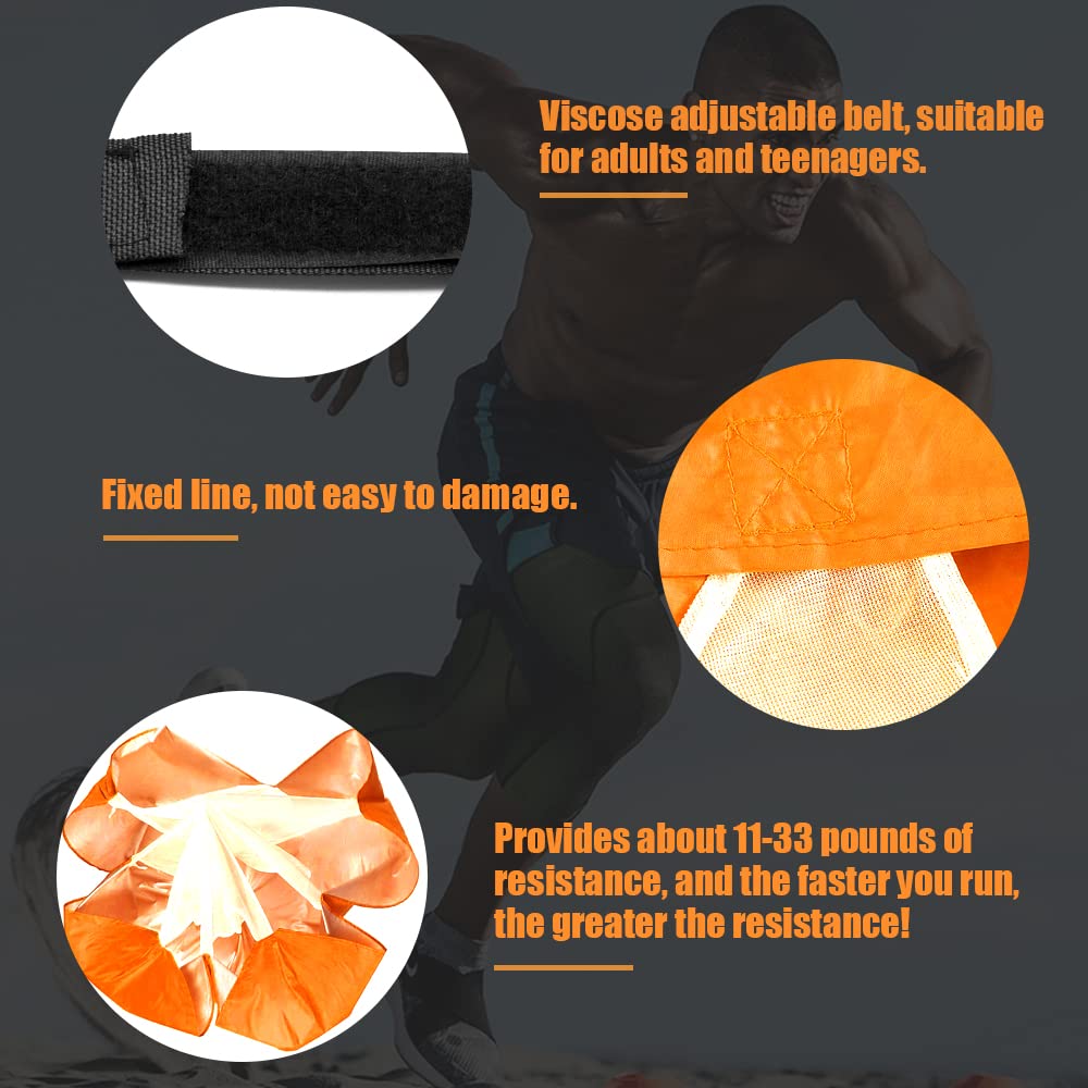 - 【Running Parachute Speed Training】:resistance parachute with resistance, you can conduct strength training and speed training at the same time. Maximize acceleration and top running speed by resistance and speed training, through this movement, the ability of users acceleration and muscle endurance can be improved.