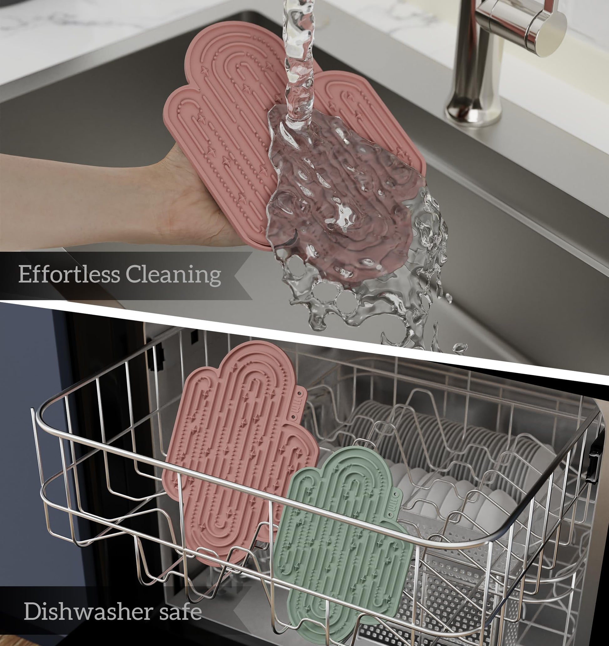 - Premium Food-Grade Silicone - The OHMO dog licking mat is crafted from exquisite, non-toxic food-grade silicone that is BPA-free. This premium material ensures durability and resilience, making it ideal for your beloved pets. Moreover, the mat is freezer and dishwasher safe, allowing for effortless cleaning and convenient usage. Pet Chocking Hazard. Supervised pet use only. DO NOT CHEW or BITE. To avoid the risk of injury to your pet, immediately discard this product begins to break apart.