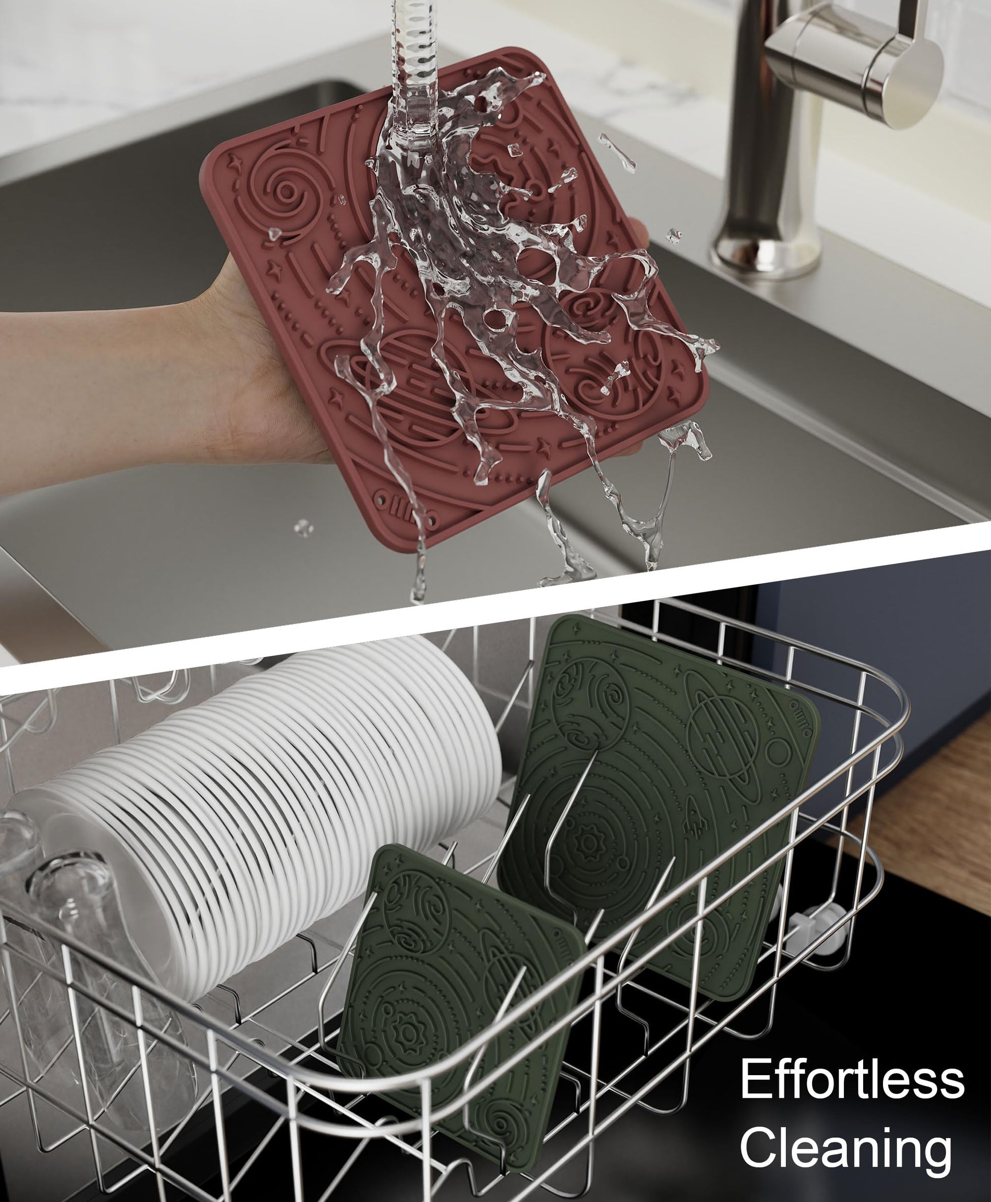 OHMO Lick Mat for Dogs and Cats(Small, Mars&Coral, 2pcs) Enrichment Accessories Toy Space Star Easy Clean Pet Slow Feeder/Suction Cups, Licking Pad for Anxiety Relief and Boredom Reduction