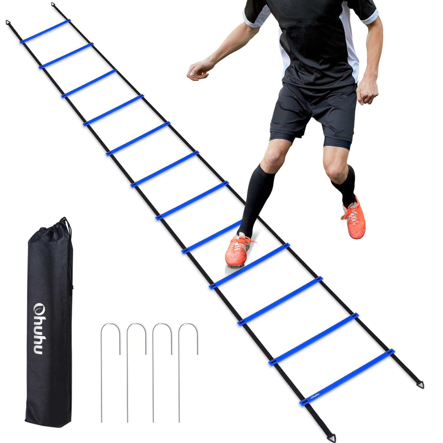 - PREMIUM AGILITY TRAINING EQUIPMENT: Ohuhu Agility ladder is made of high quality PP material, heavy nylon belt, equipped with 4 ground nails, durable, suitable for indoor and outdoor training.