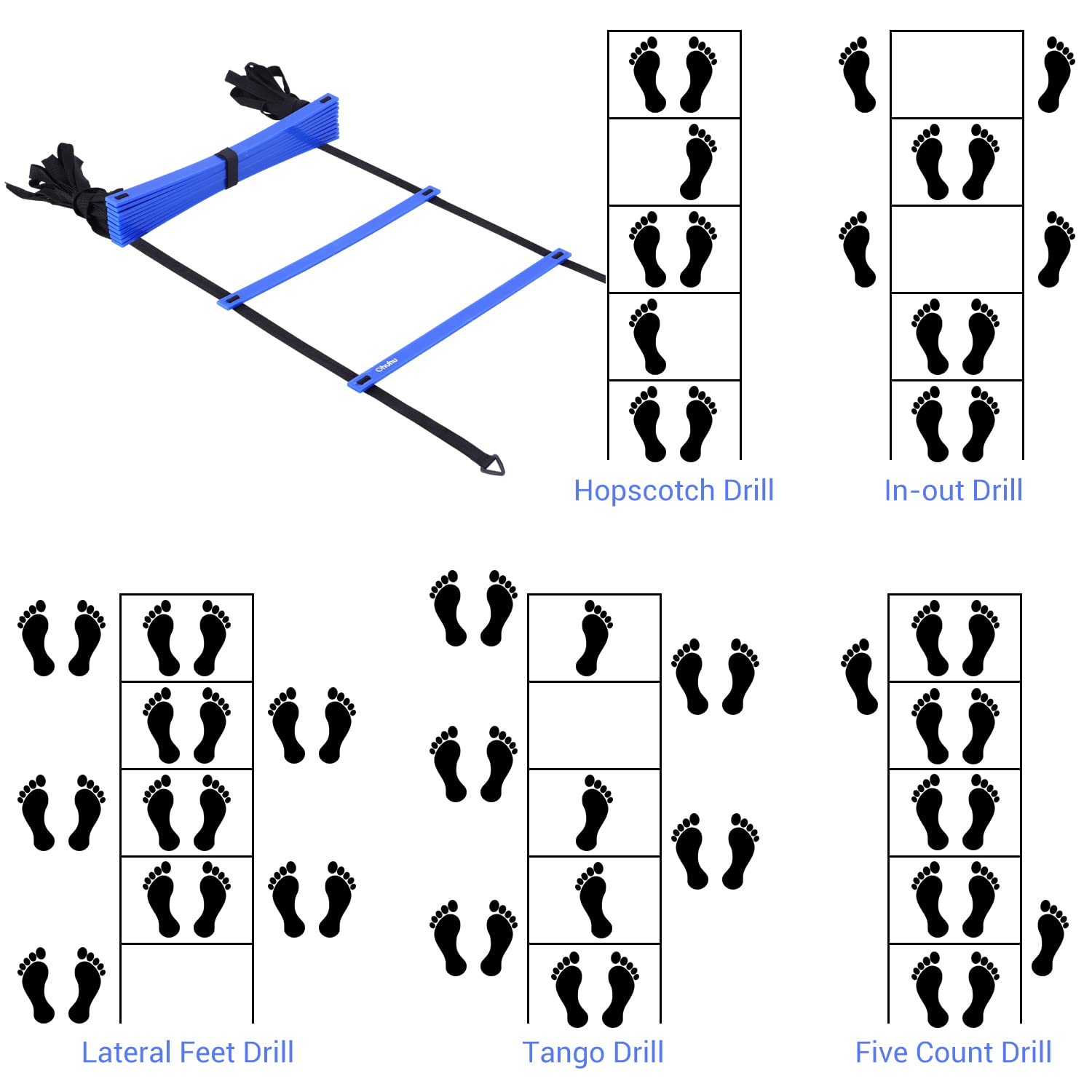 - IDEAL TOOL FOR ANY SPORTS: The footwork training ladder is a ideal tool for all athletes and trainers to improve foot speed, movement control, lateral response, core skills, overall balance, general fitness and physical education equipment usage.