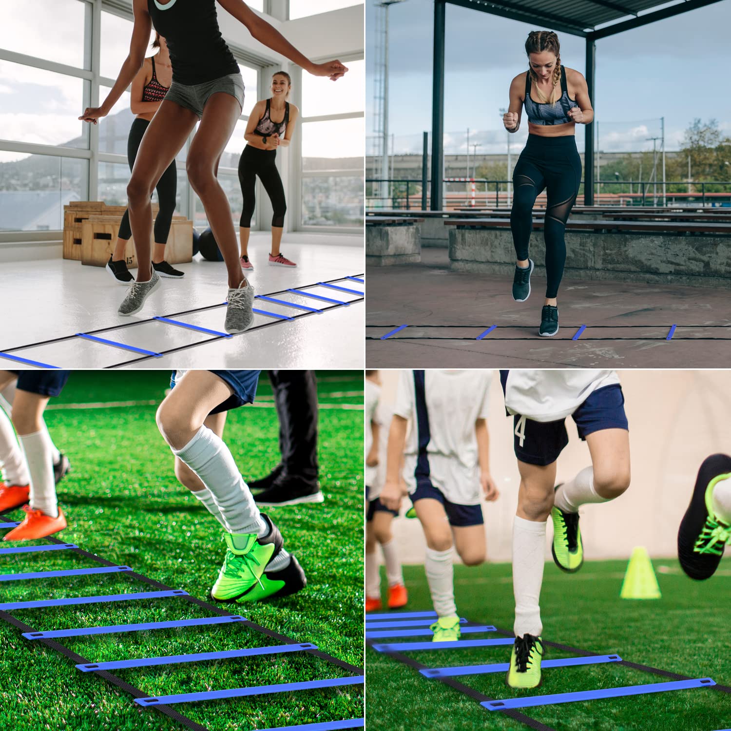 - EASY TO USE: Simply unravel the straps and rungs to set up on surfaces for use. Ideal for athletic training, football, soccer, basketball drills, hockey, lacrosse, tennis, badminton, rugby to increase speed and agility.