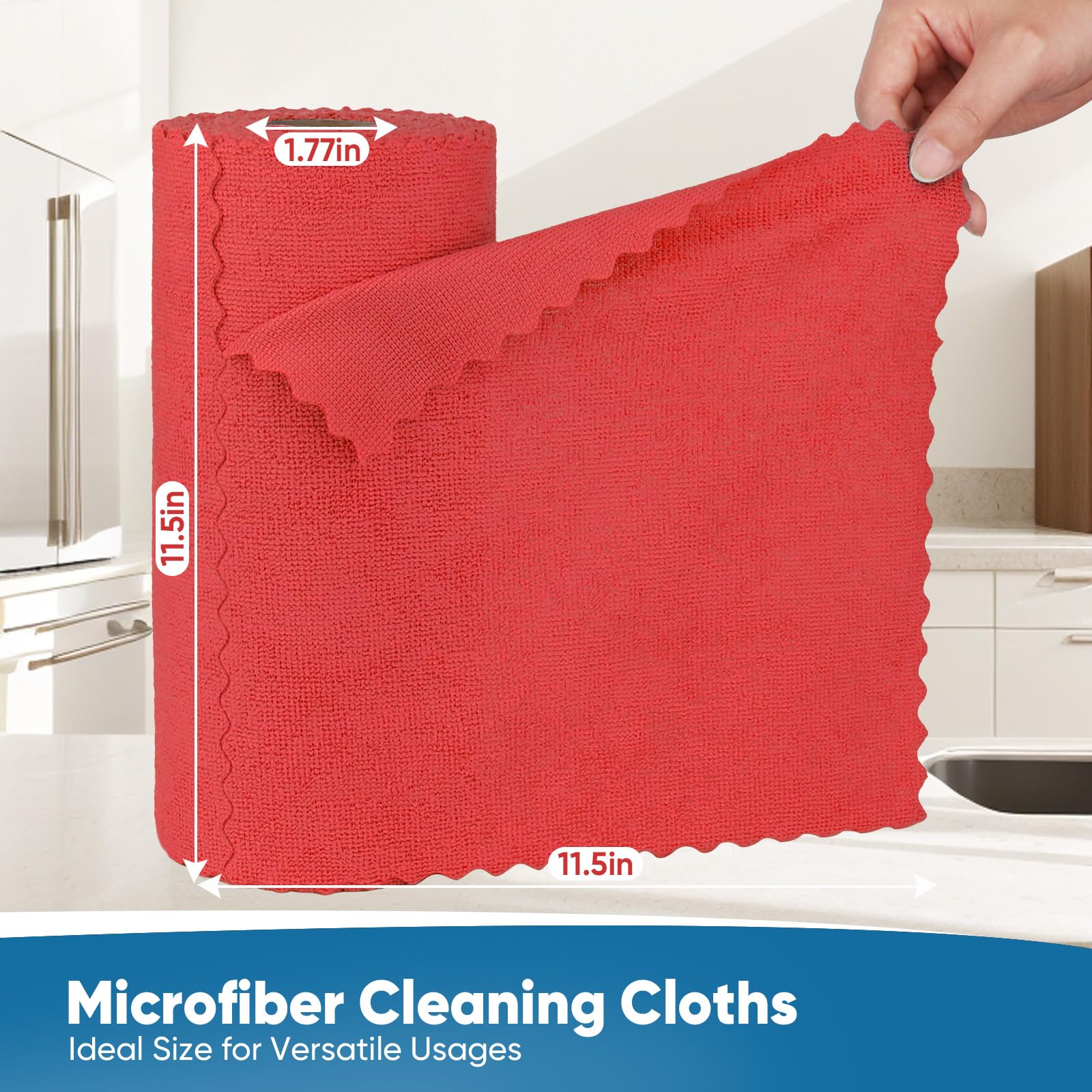 Orighty Microfiber Cleaning Cloths, 75 Sheets Shop Towels, Reusable Paper Towels Shop Rags, Washable Microfiber Towel Roll Cleaning Rags for Cars, House, Kitchen, 11.5’’ x 11.5’’, Red