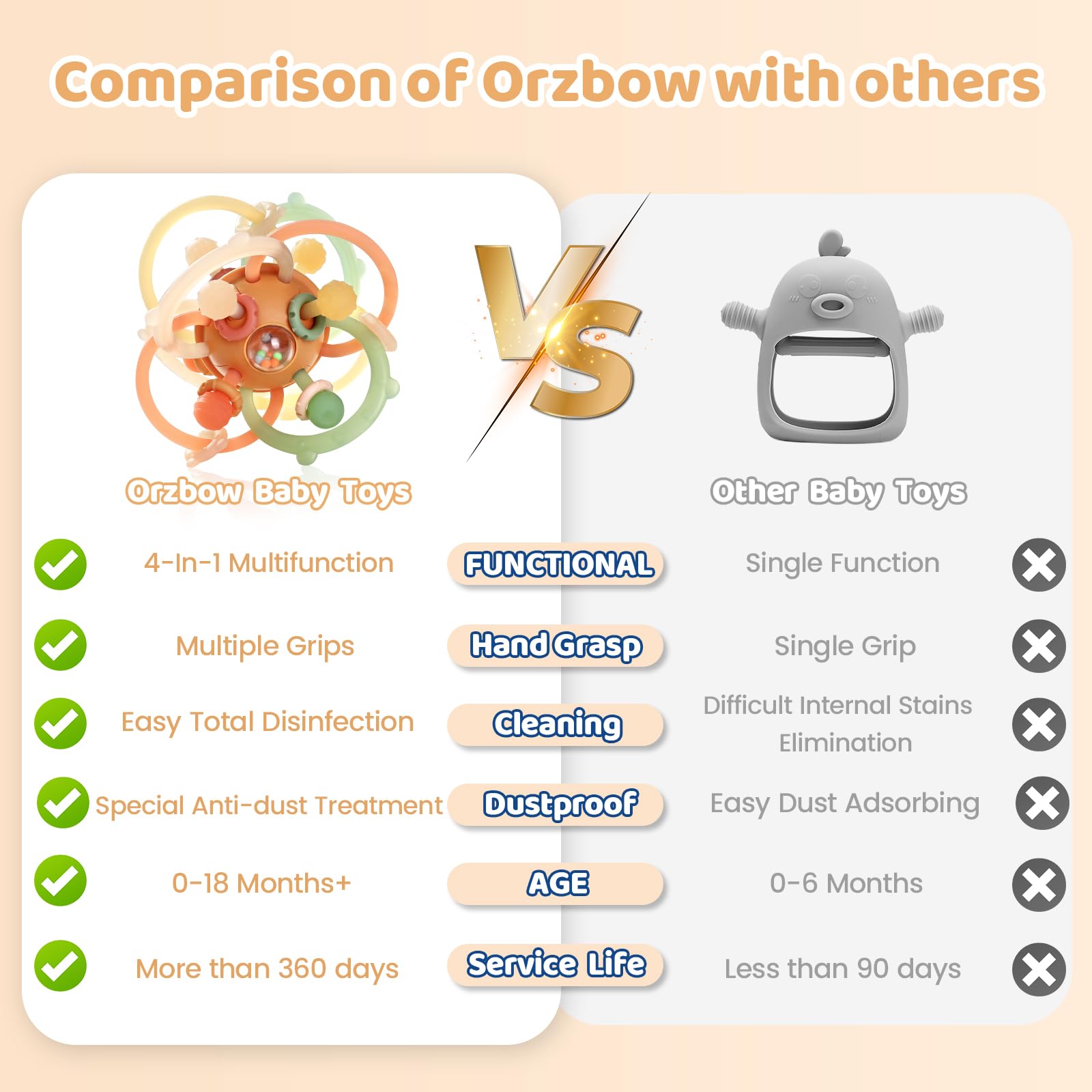 - ๐๐๐๐๐๐๐๐๐ ๐๐๐๐๐๐๐๐ ๐๐๐๐๐๐๐ ๐๐๐: Equipped with 8 colorful silicone balls with different textiles, Orzbow Teethers Toys for Babies can soothe and massage the gums well with different feelings, exercise the baby's ability to chew and bite and greatly provide fun, which is ๐๐ข๐ฌ๐ก๐ฐ๐๐ฌ๐ก๐๐ซ ๐๐ง๐ ๐ซ๐๐๐ซ๐ข๐ ๐๐ซ๐๐ญ๐จ๐ซ ๐ฌ๐๐๐ (๐ฑโ ๐ญ๐จ ๐ฎ๐ฐ๐ดโ), your ideal choice for 3-12 months baby's early development, making parenting easier