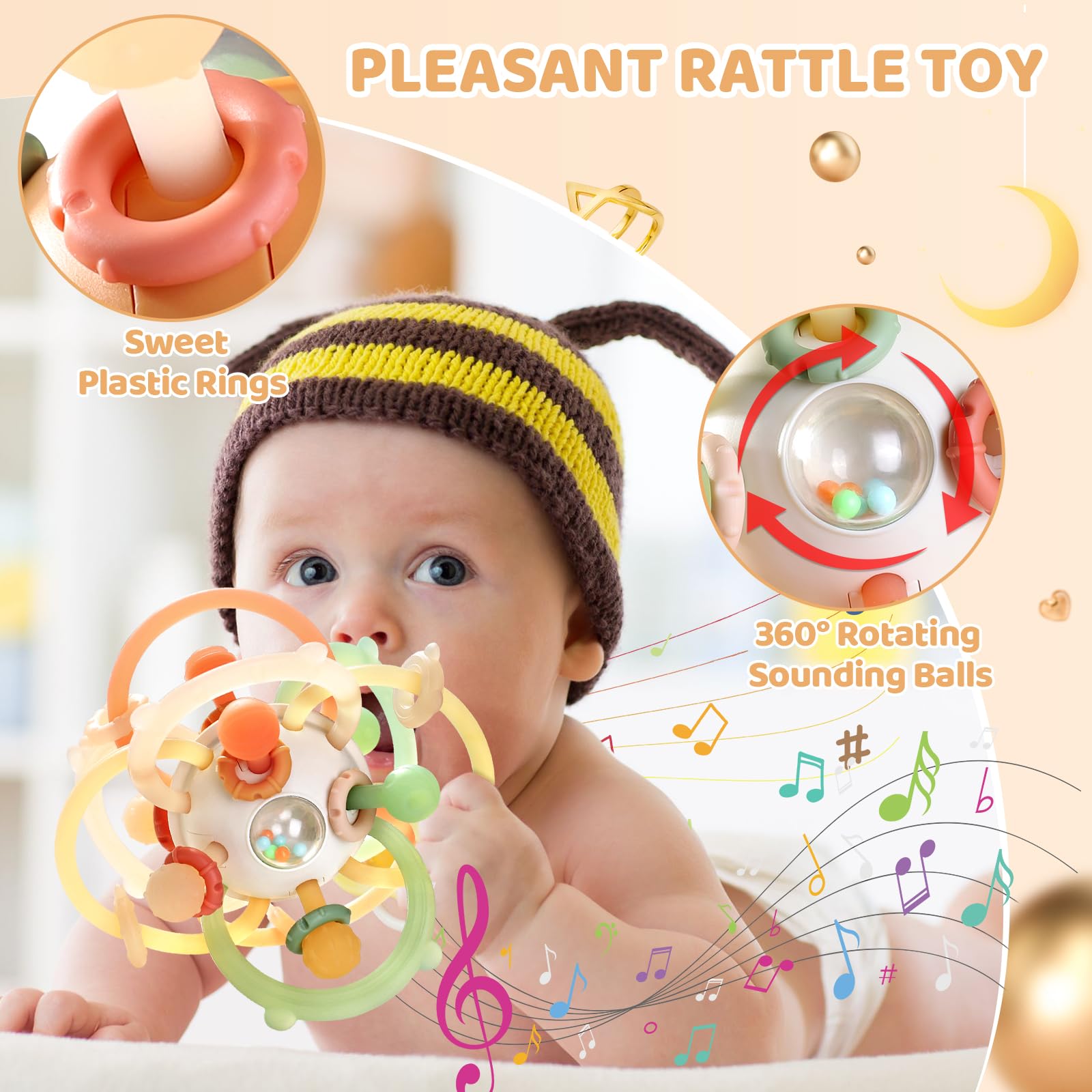 - ๐๐๐๐๐๐๐๐ ๐๐๐๐๐๐๐ ๐๐๐๐: With the small plastic rings on the balls and built-in small sounding balls, Orzbow Baby Rattle Toys can make a pleasant rustling sound when shaked or bitten, which not only effectively calms baby's restlessness, but also encourages grasping, rocking and biting, promoting hand-eye coordination and building dexterity