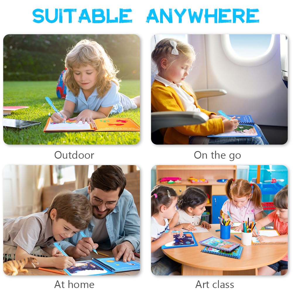 - Easy to Use: You just use the magic pen with water, add some water, and smear on every corner of the water book to see the hidden colors, patterns, and text; they will disappear naturally after drying for 8 minutes, so you can use it again and again Write and paint again with these watercolor paints!