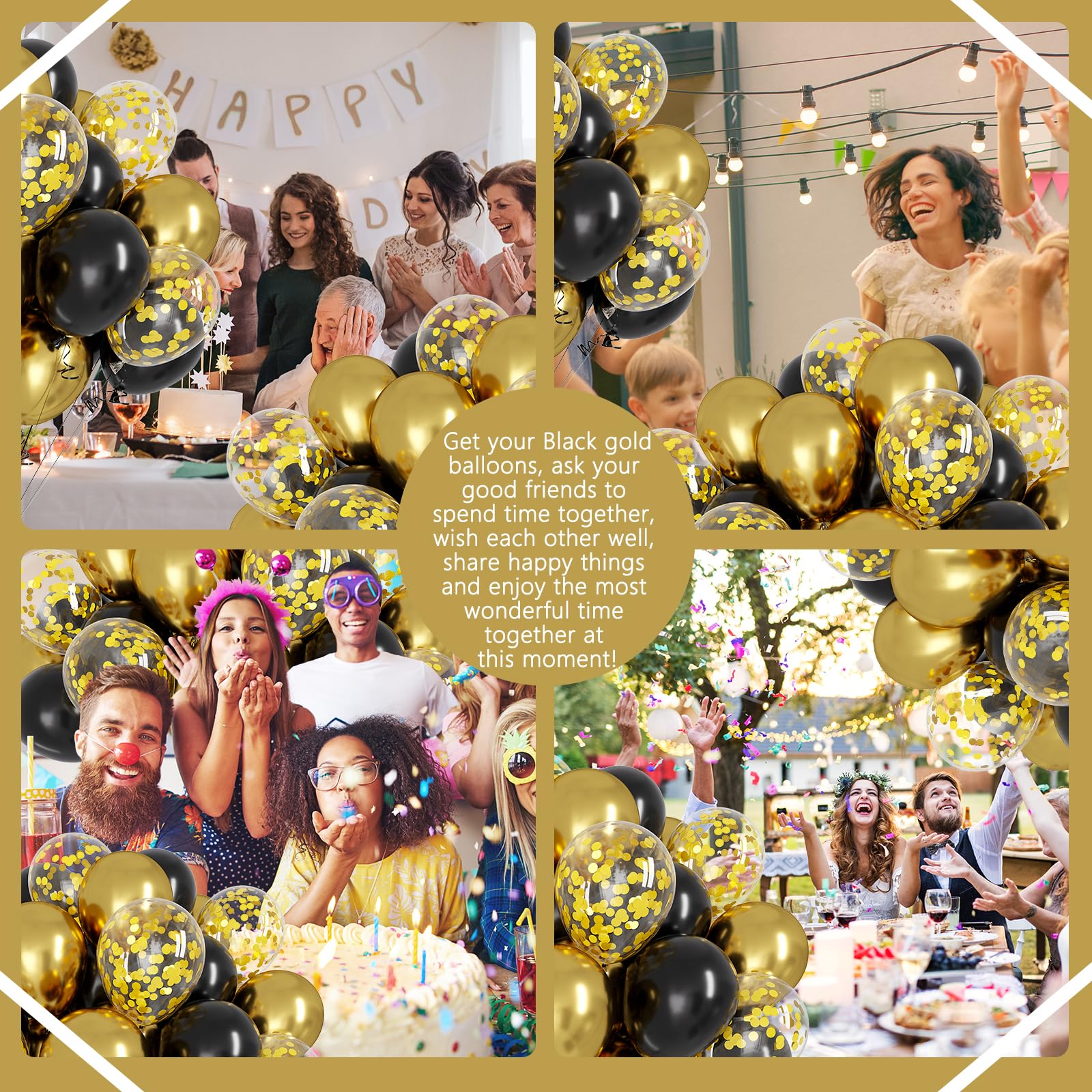 - PREMIUM BALLOONS - The balloon kit includes 100 pcs 12-inch black and gold confetti balloons, with 2 roll 32ft black ribbon for effortless decorating.