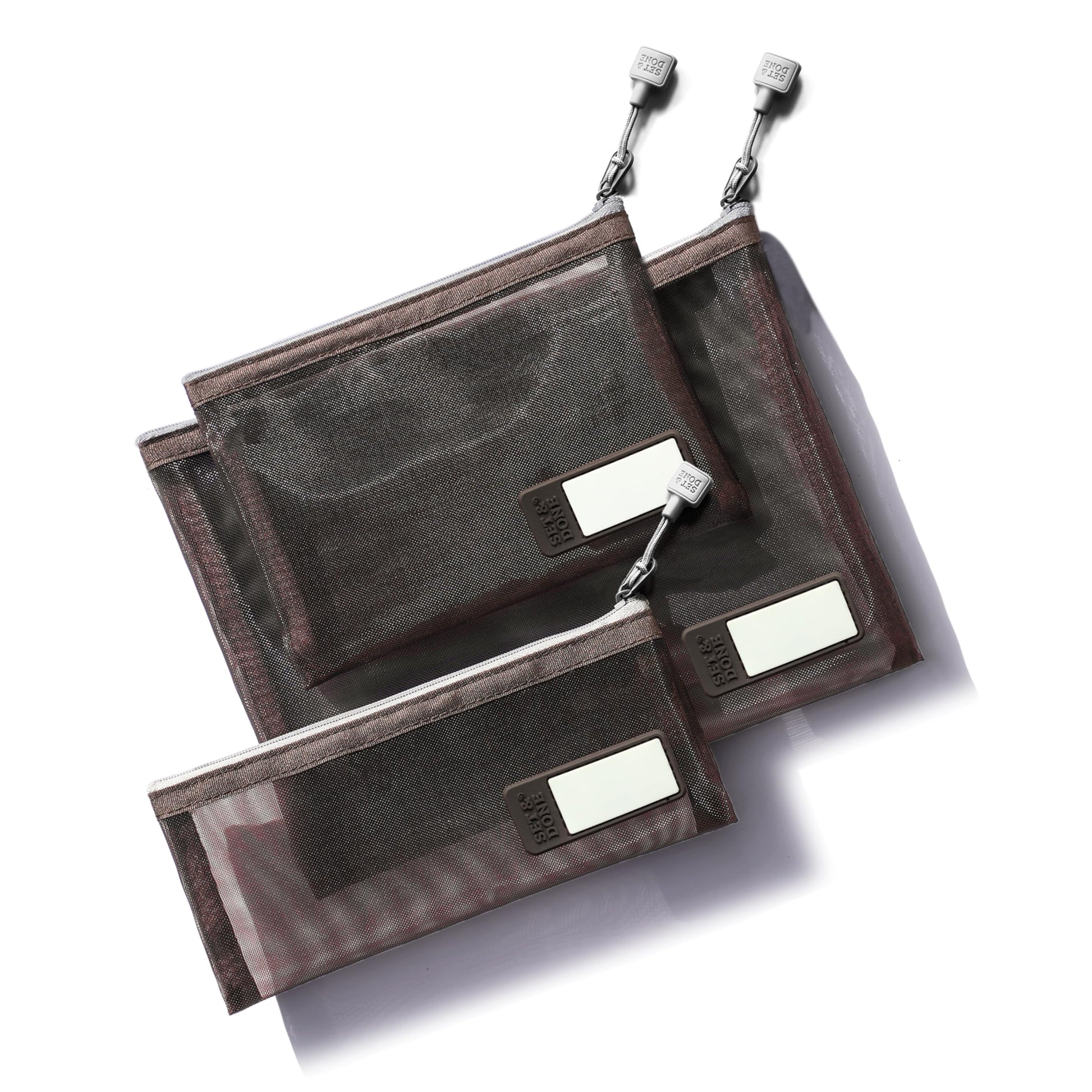 Pack of 3 Nylon Zipper Mesh Pouch Set with Name Tab - Premium Travel Organizers - Mesh Bags for Ultimate Organization - Ideal for Diaper Bag and Makeup Storage - Espresso Brown.