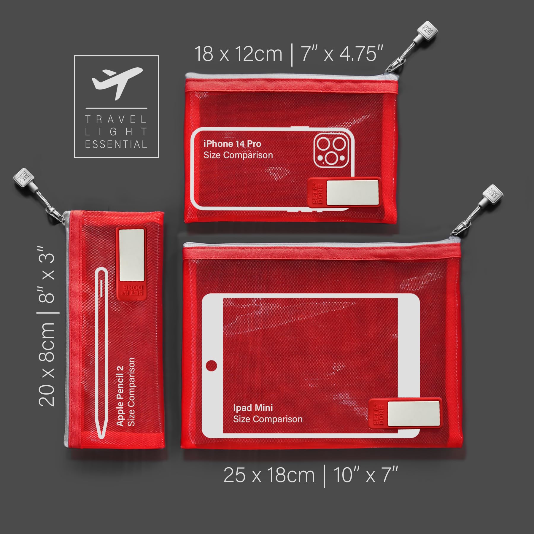 - VERSATILE SIZES WITH ULTIMATE TRAVEL POUCH SET : These mesh zipper pouches come in three sizes - Large (10 x 7 in), Medium (7 x 4.75 in), and Small (8 x 3 in). A versatile pack of 3 travel mesh pouches, perfect for keeping your belongings organized during your travels. These pouches also serve as efficient backpack organizers, ensuring hassle-free packing,