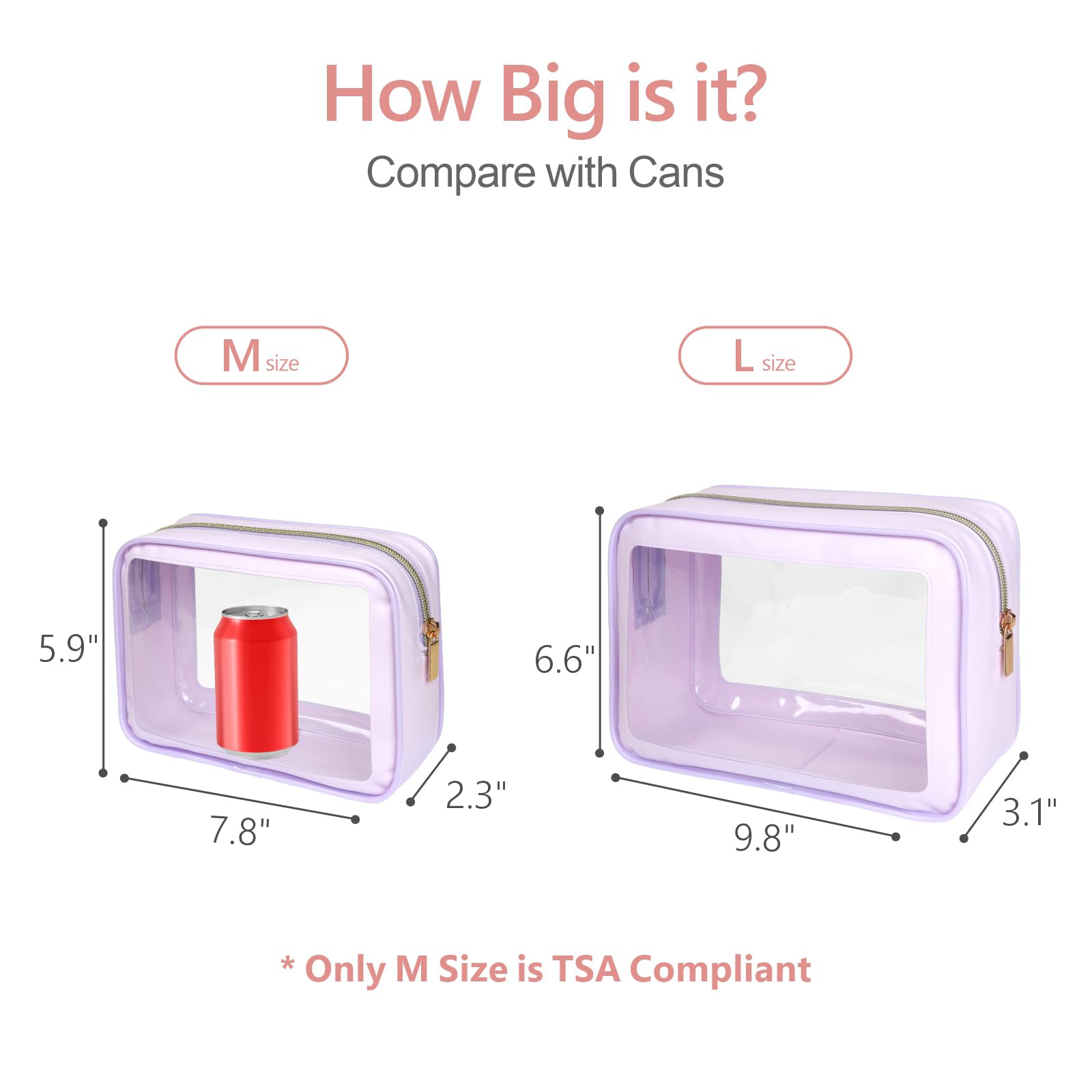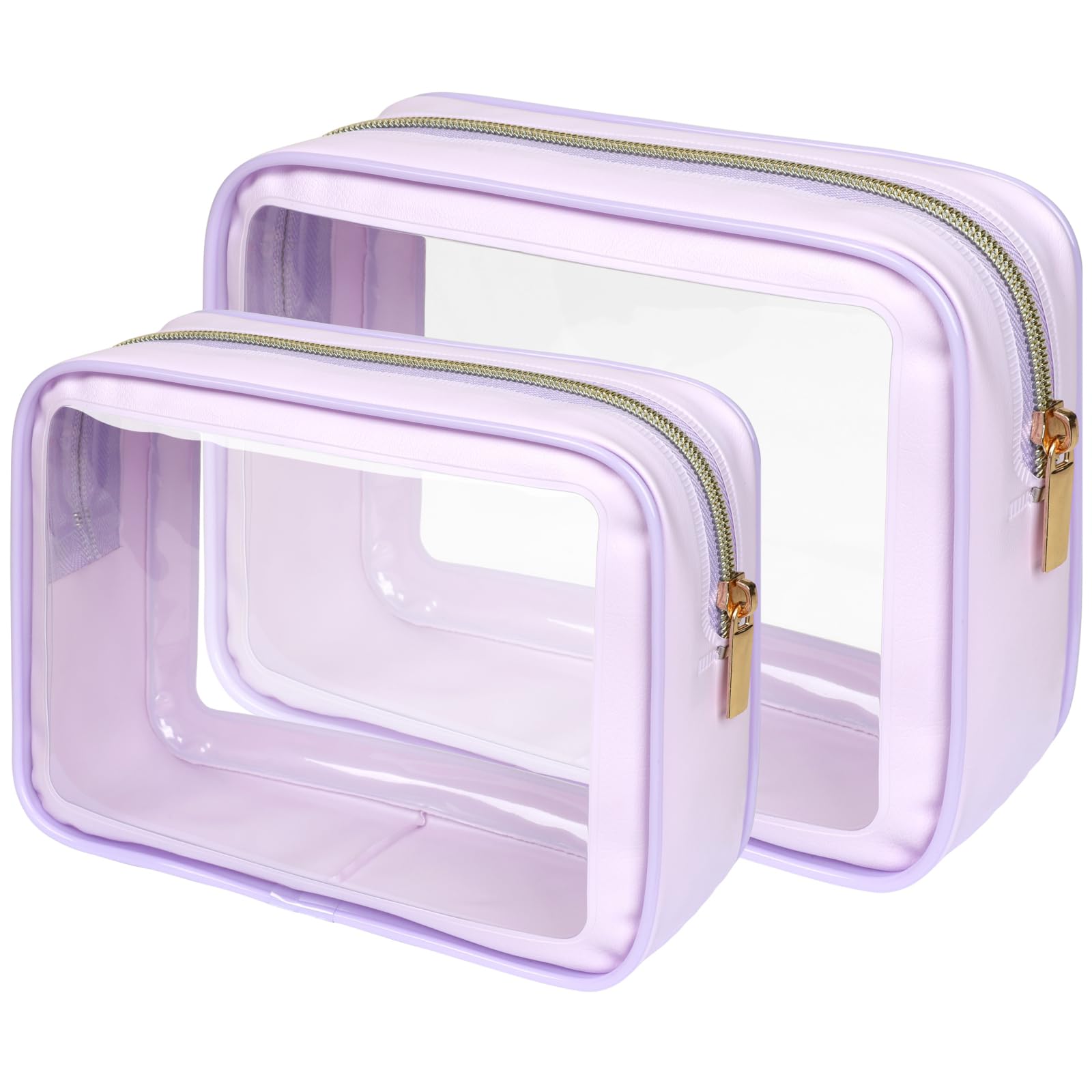 PACKISM TSA Approved Toiletry Bag - Upgrade Color-Edged Clear Makeup Bag, Unique Appearance, 2 Pack Hold Lots of Items, Reusable Clear Toiletry Bags for Travel Essentials, Purple (2 Sizes)