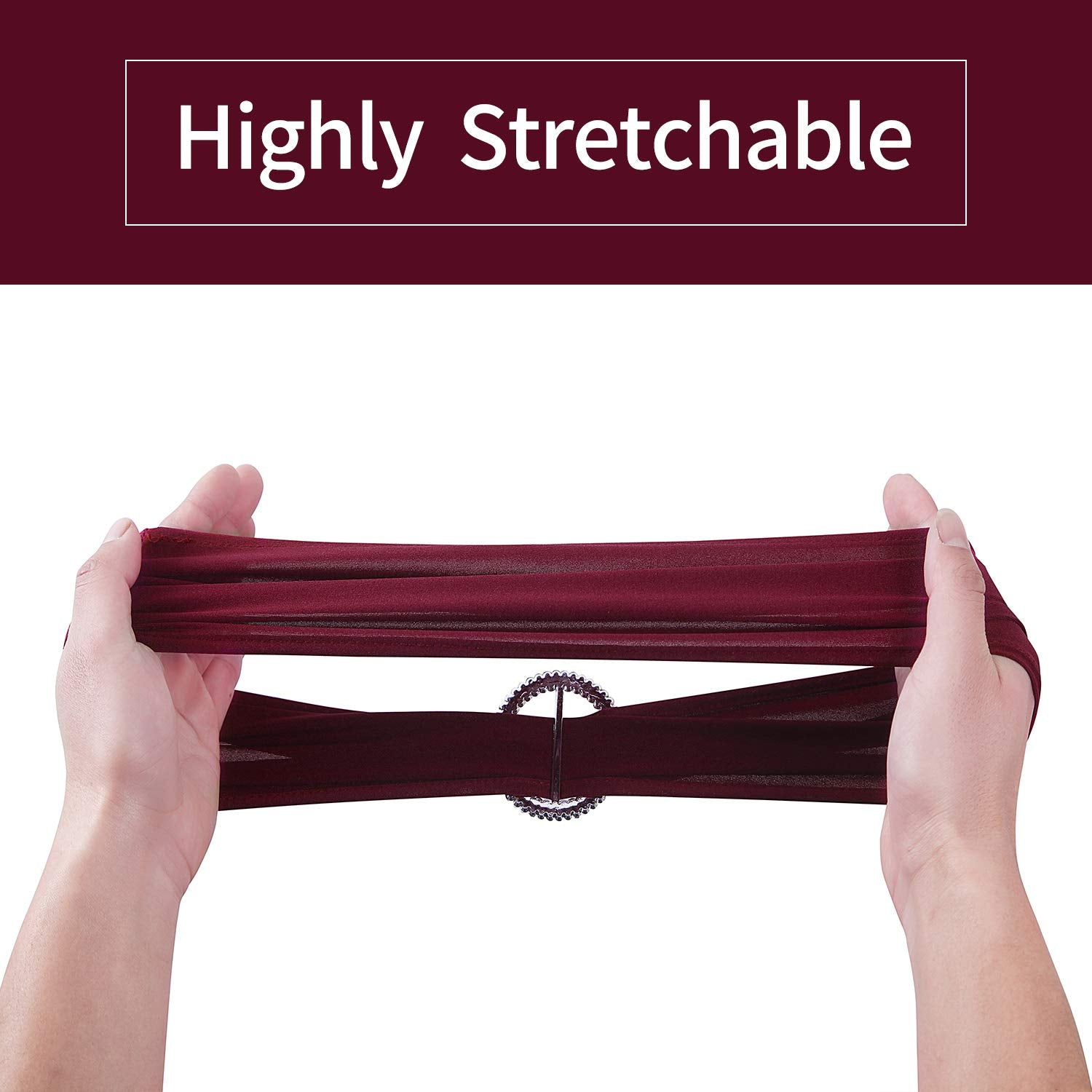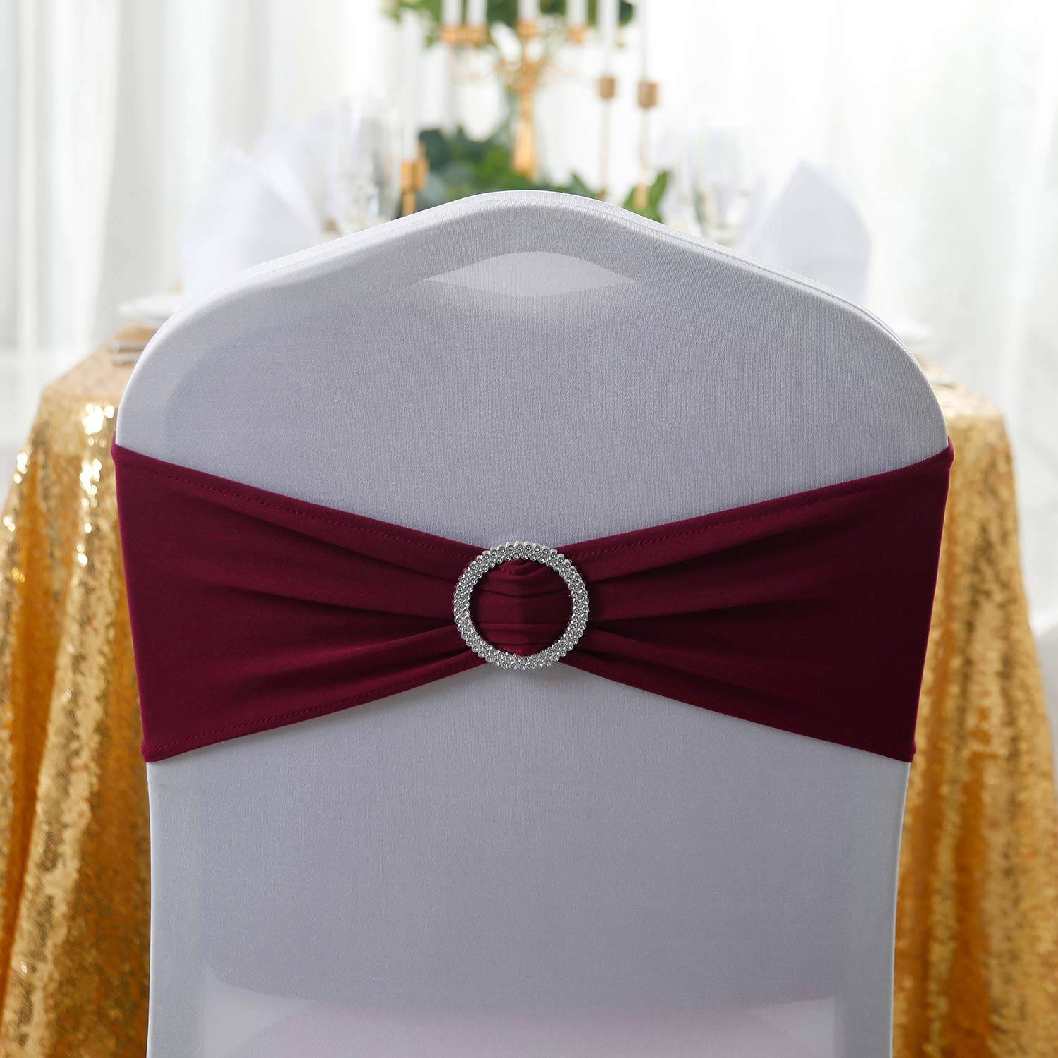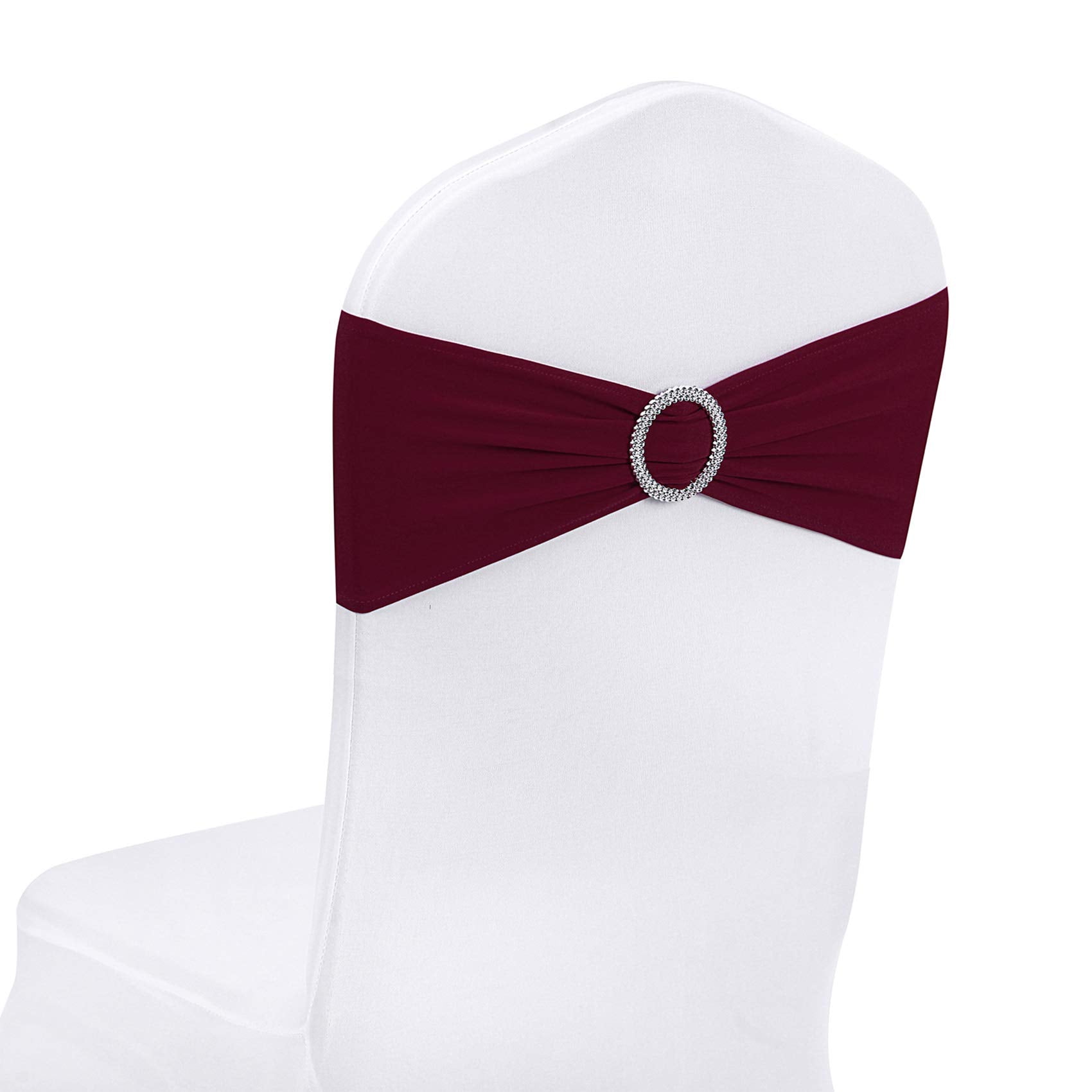 Peomeise 100pcs Burgundy Spandex Chair Sashes with Buckle Slider for Wedding, Party Decoration