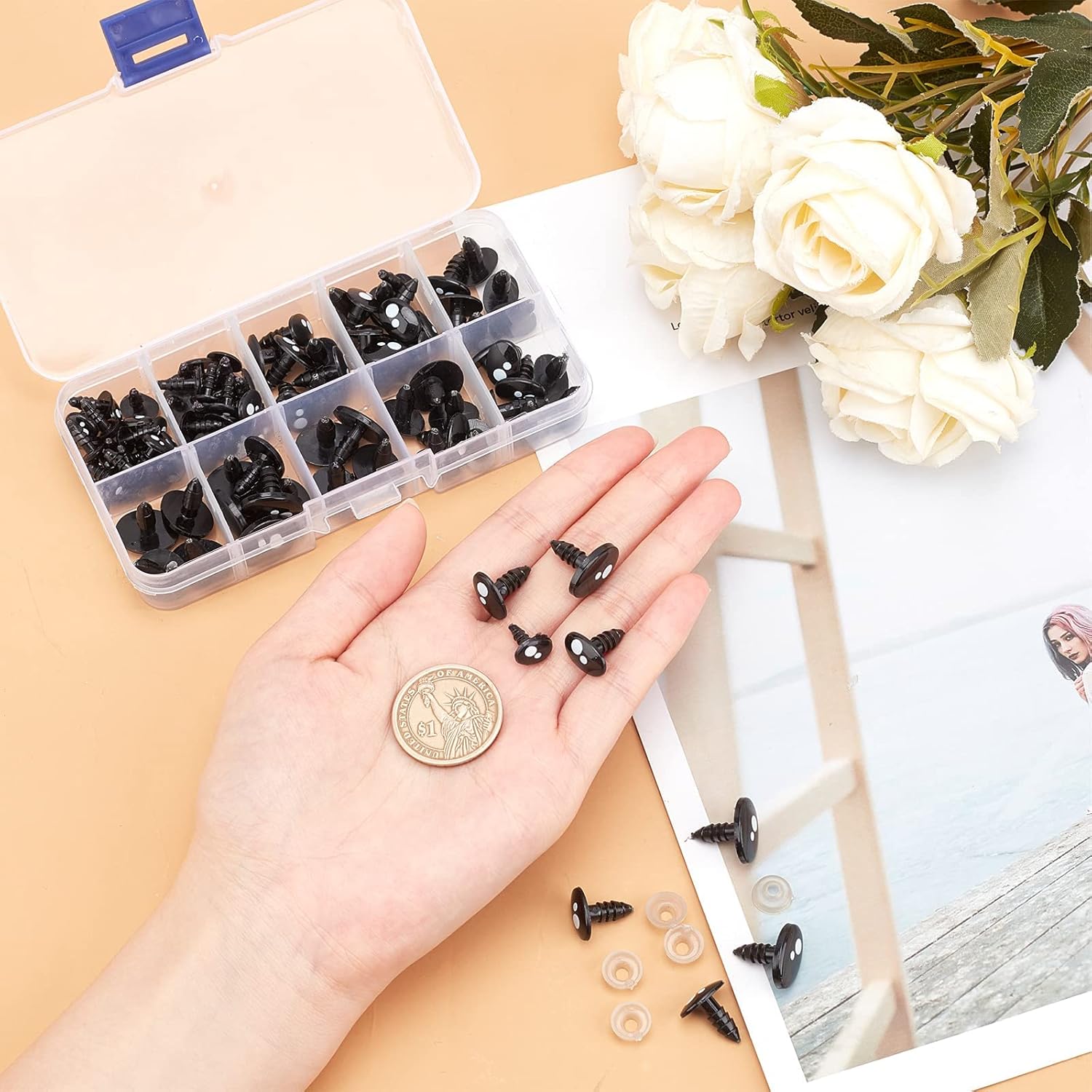 PH PandaHall 200pcs Kawaii Safety Eyes, 5 Sizes Craft Eyes Black Stuffed Animal Eyes Kawaii Eyes with Washers Oval Resin Felt Eyes for Amigurumi Puppet Teddy Bear Crochet Plush Animal Making
