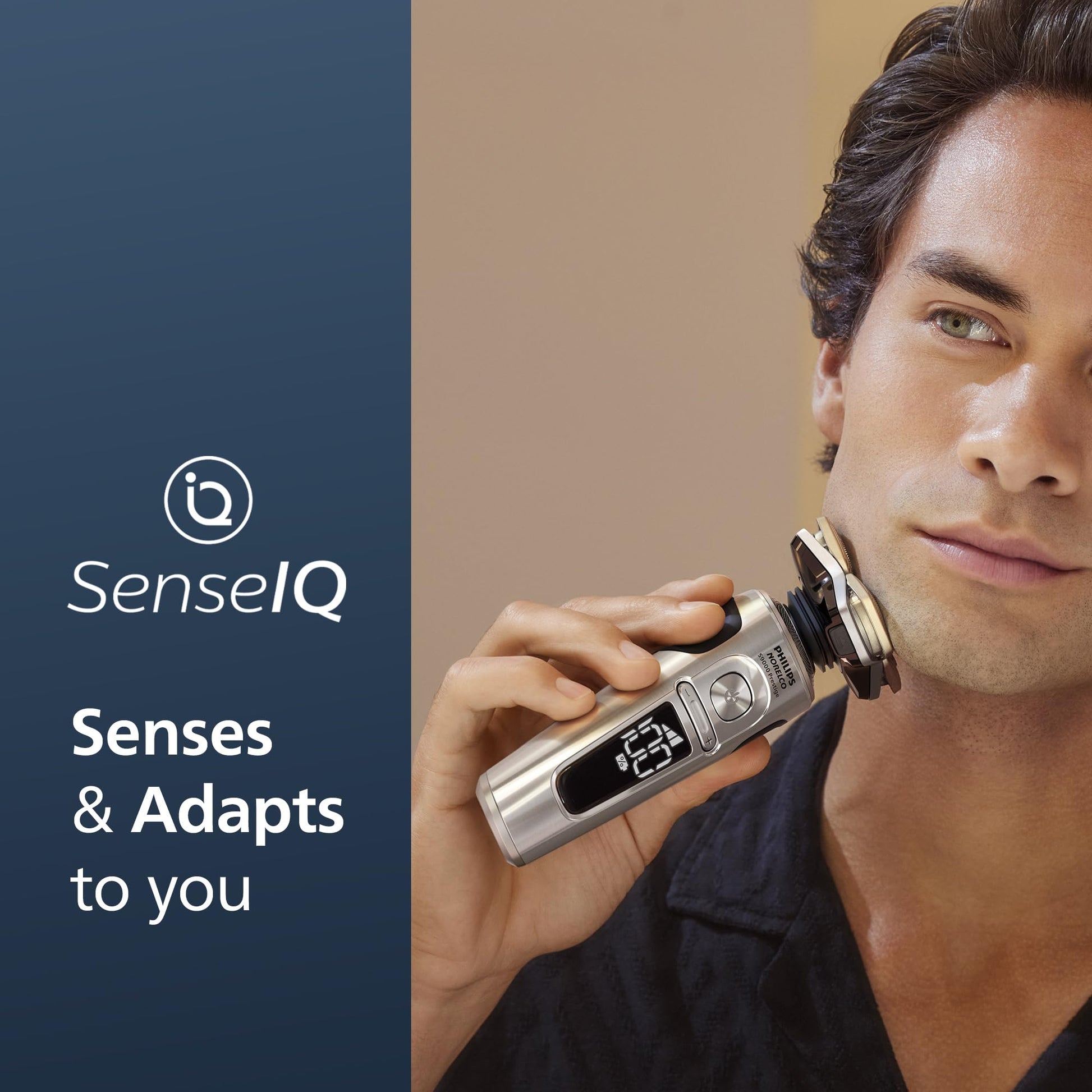 - Experience an incredibly smooth and close shave - even on 7-day beards, with Philips Norelco S9000 Prestige. Equipped with SenseIQ technology the shaver senses and adapts to you for the shaving experience you always desired. Philips Norelco's Series 9000 Prestige glides smoothly over your skin while cutting each hair exceptionally close in fewer passes resulting in a difference you can feel.