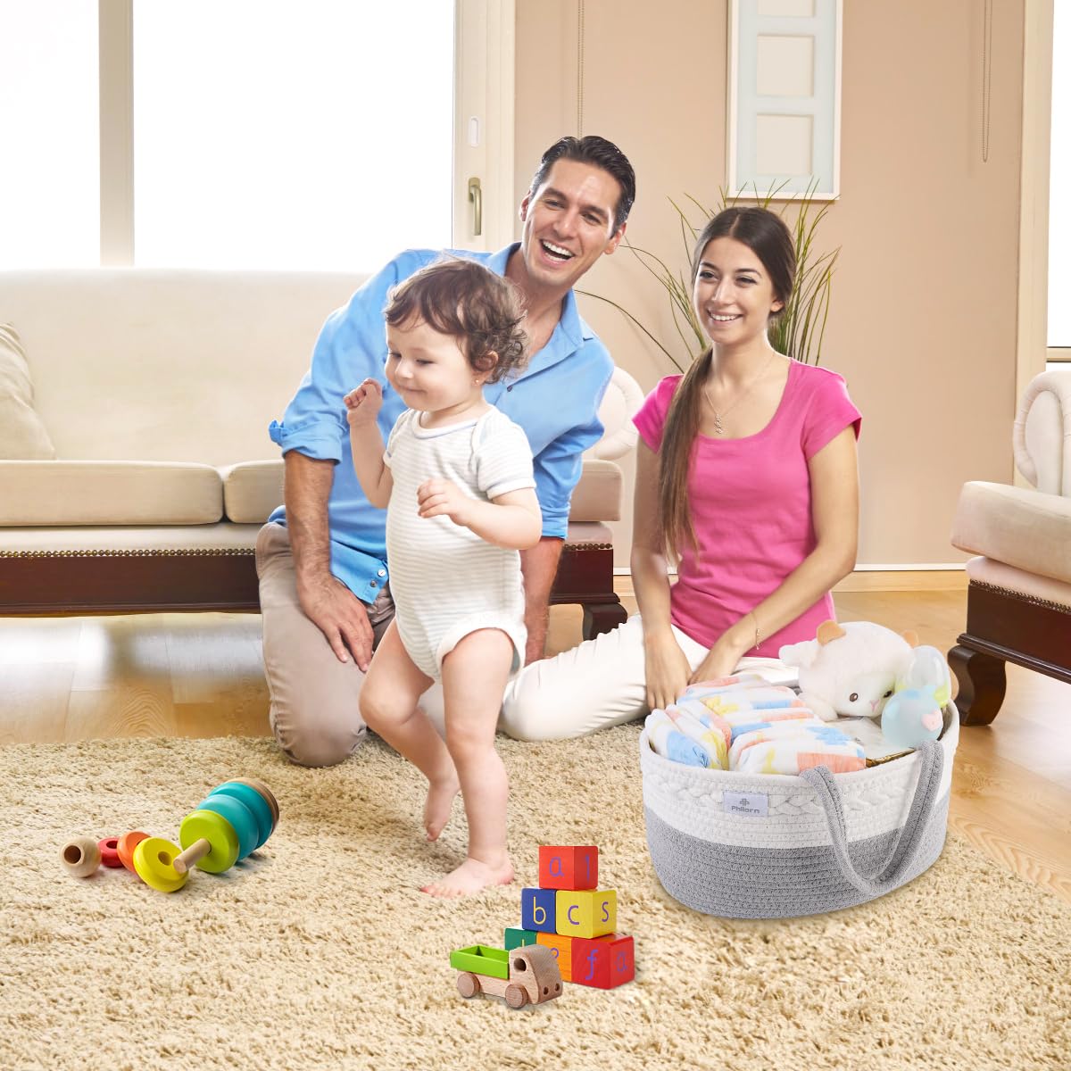 - Baby Safe & Skin Friendly: Our baby diaper caddy is made of 100% Cotton exterior and polyester lining. This woven basket is very durable and sturdy. It's soft to touch, odor-free, and easy to clean. The woven diaper caddy is useful and looks very beautiful. It's a great Baby Shower Gift.