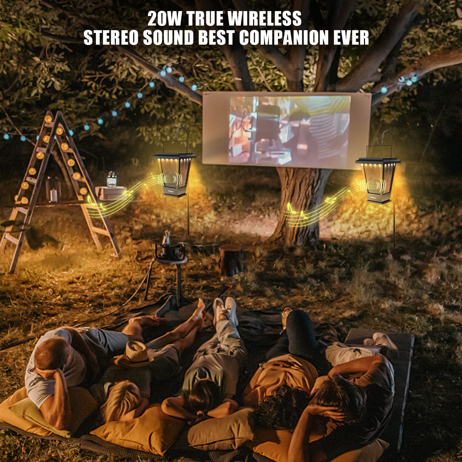 pohopa Bluetooth Speakers Waterproof, Solar Powered 2 Packs True Wireless Stereo Sound 20W Dual Pairing Lantern Indoor Outdoor Speakers with 20 Piece LED Lights, Richer Bass, Black