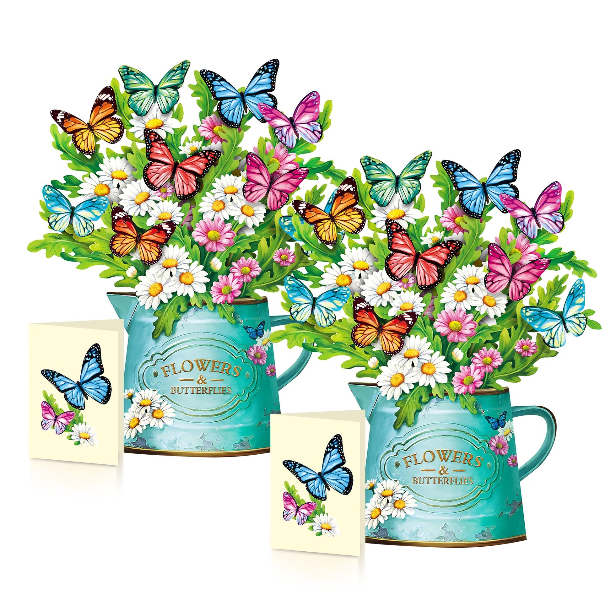 Pop Up Flower Cards, Paper Flowers Bouquet 12’‘ Daisies and Butterflies 3D Popup Graduation Cards with Blank Note and Envelope, Birthday, Wedding Decor, Thank You Gifts for Women Mom Girls Friends