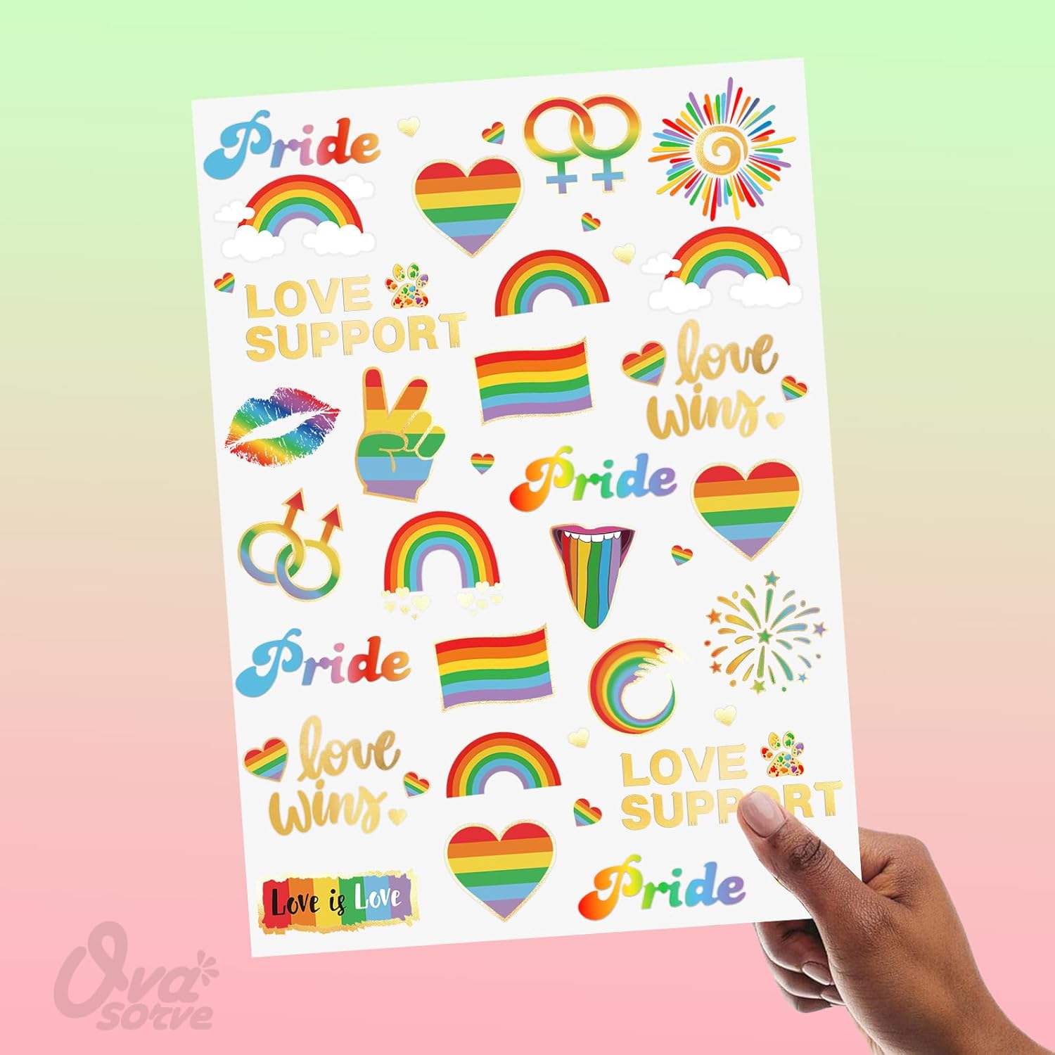 Ovasorve rainbow temporary tattoos support lesbian, gay, bisexual, and bi transgender. Show our pride, spread the attitude of 'love is love' with pride accessories, and support all activities about LG
