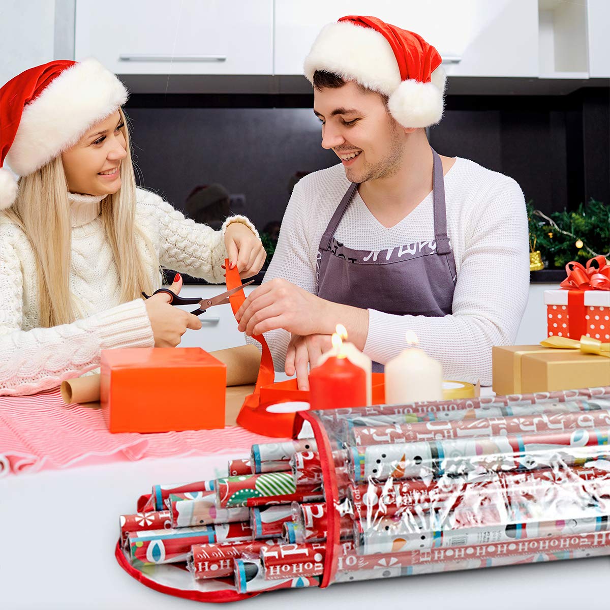 - STORAGE: Store up to about 24 rolls of wrapping paper depends in size in this convenient storage bag, folds away small and neat.