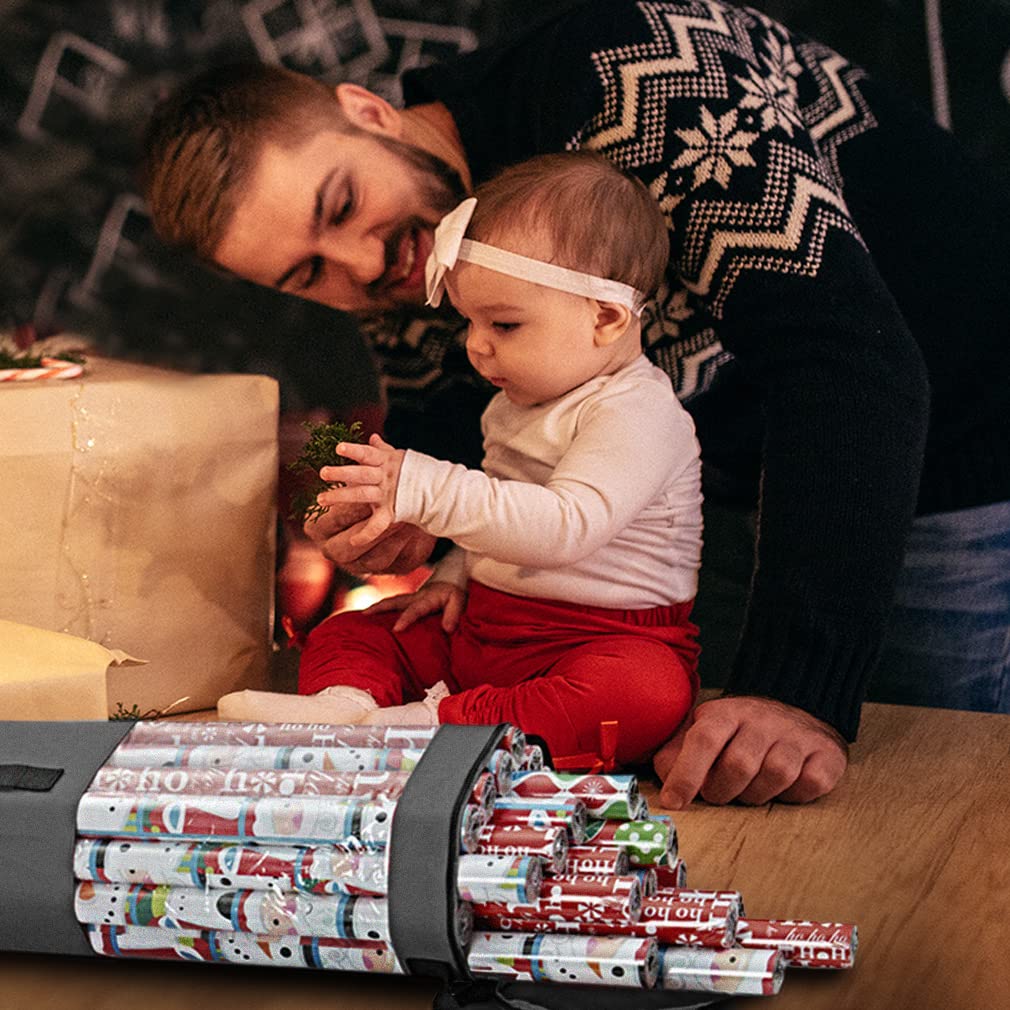 - STORAGE: Store up to 25 rolls of wrapping paper in this convenient storage bag, and fold away storage bag when emptied