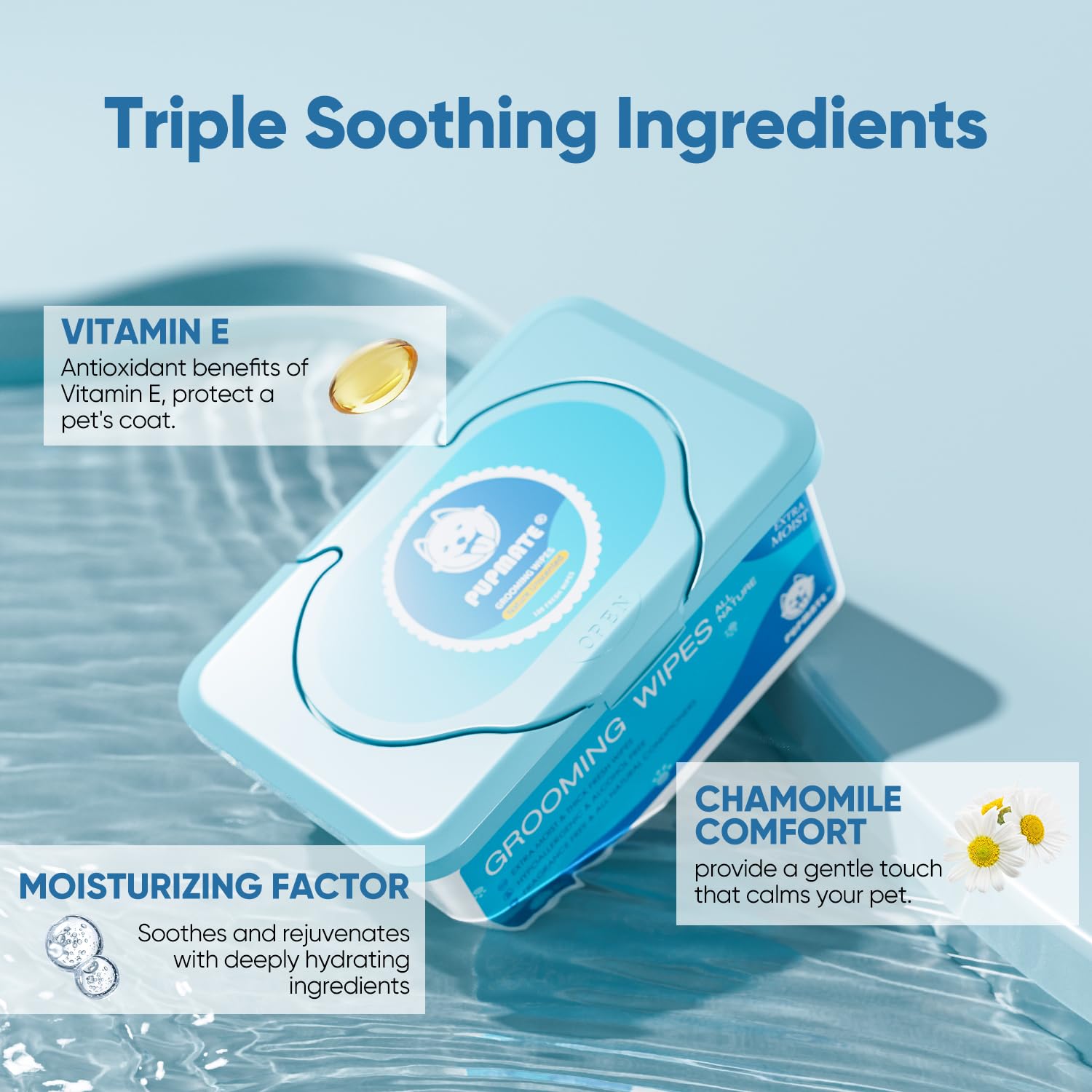 - GENTLE FORMULA: Rooted in the essence of natural goodness, PUPMATE pet wipes are crafted with ingredients like soothing aloe vera and vitamin E. Our pet wipes for dogs and cats symbolize gentle affection for your pets, delivering nourishment and care with each use. Vitamin E, a cornerstone of our formula, preserves healthy skin, embodying our commitment to the holistic well-being of your beloved companion
