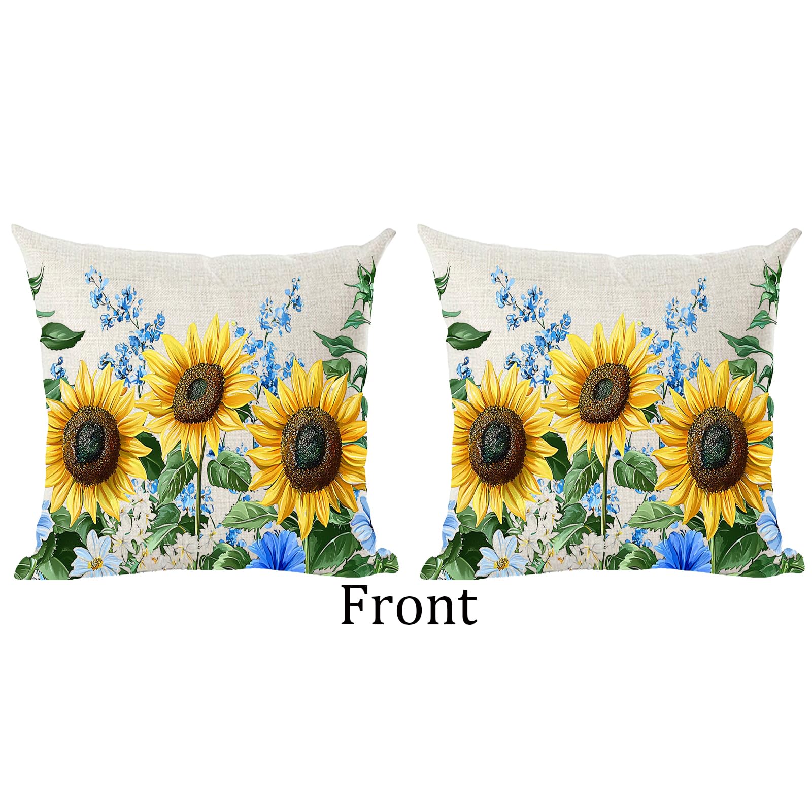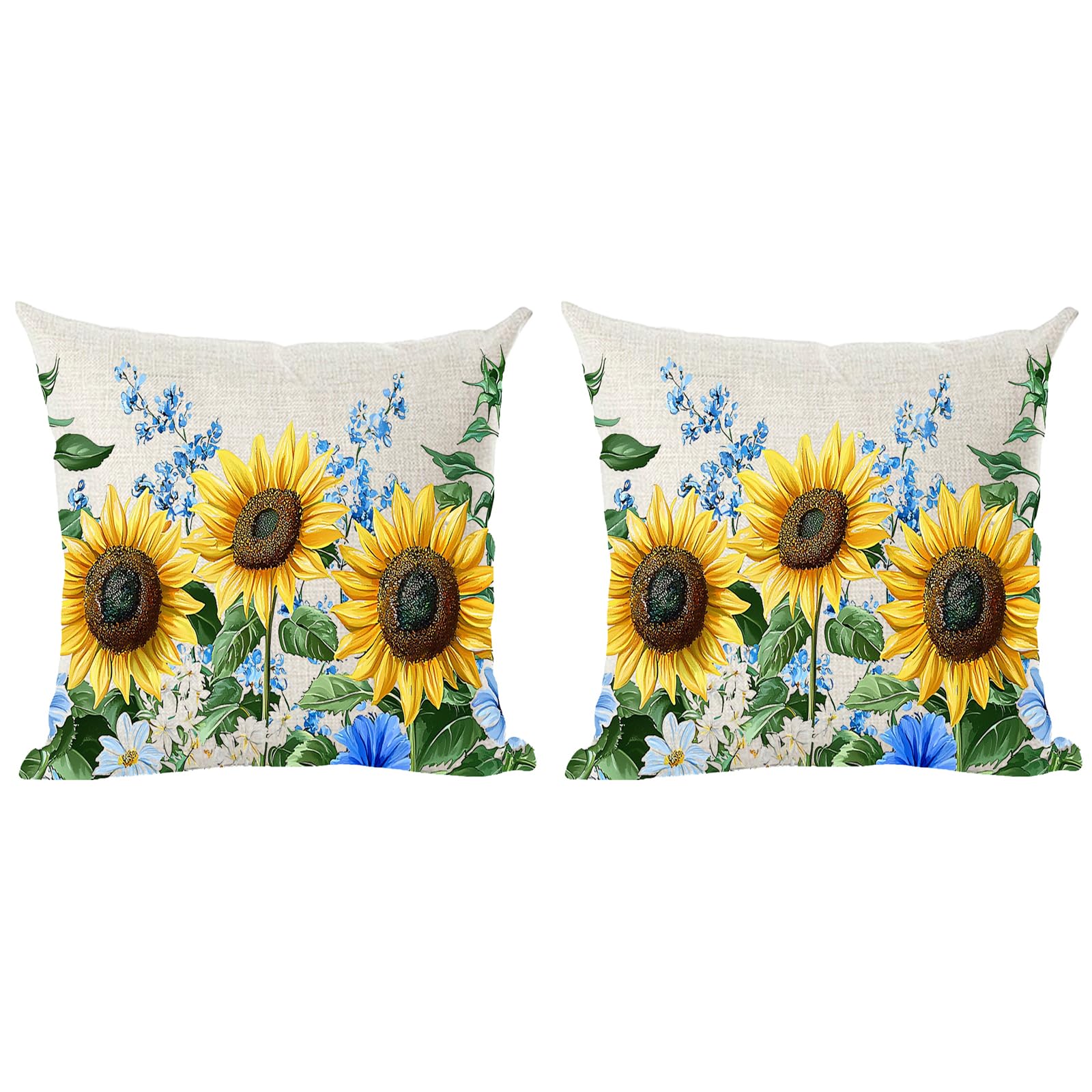 - Ramirar Set Of 2 Ink Painting Watercolor Yellow Sunflowers Blue Flowers Summer Decorative Throw Pillow Cover Decoration Cotton Linen Square 18 x 18 Inches