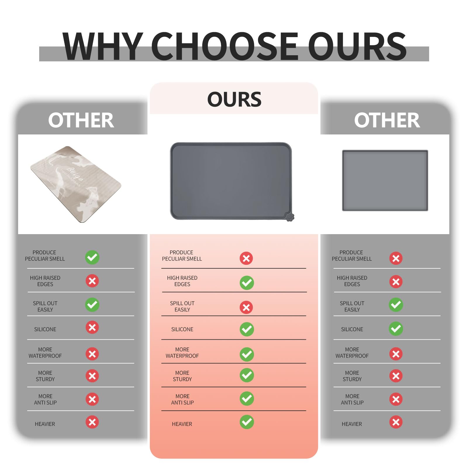 - Anti-slip design: our non-slip pet feeding mat ensures stability for your pet's bowl, preventing any water stains or spills on the floor. Enjoy peace of mind when feeding your pet, knowing that their food stays in place