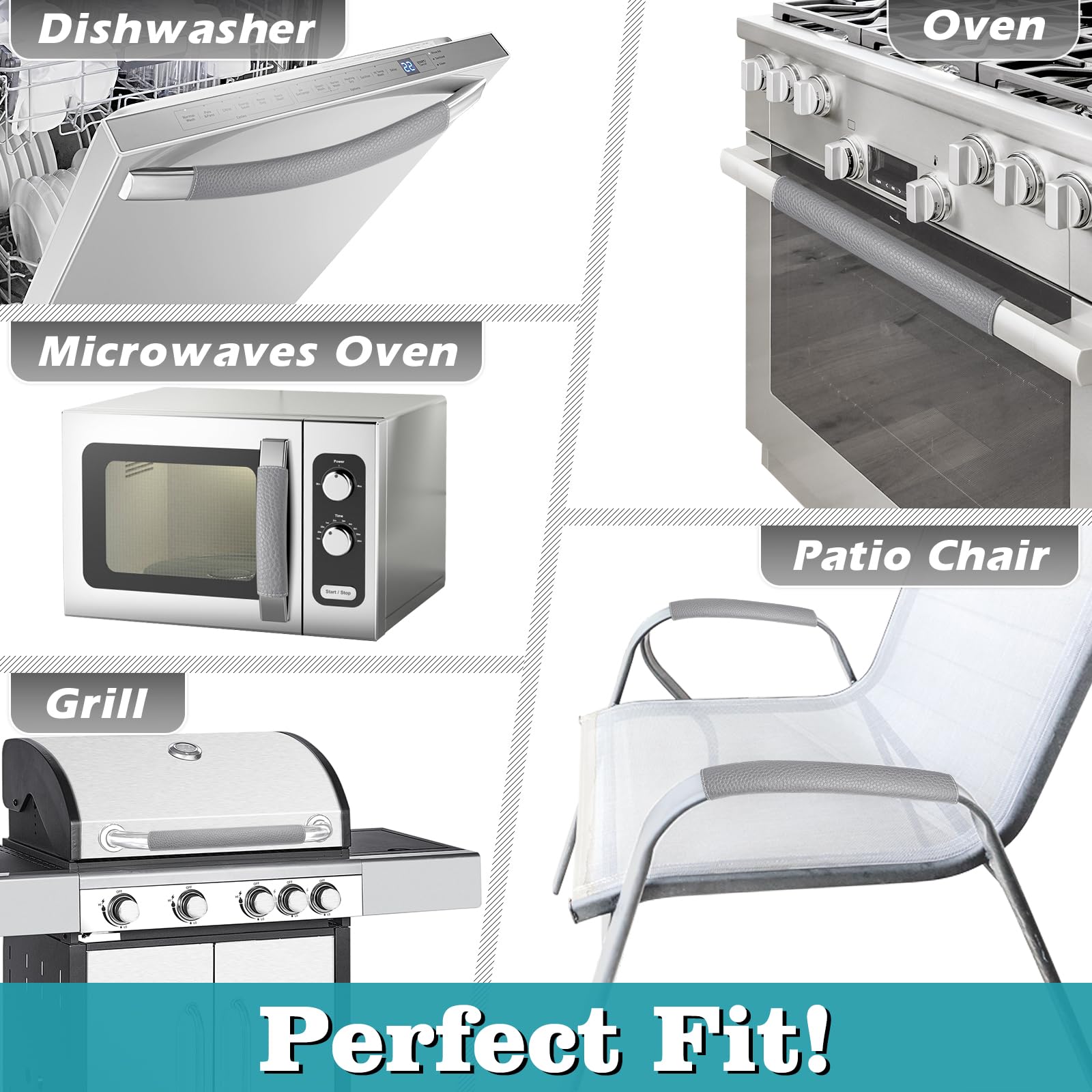- 【ADJUSTABLE VELCRO DESIGN】 - Means you can stick the Velcro strip anywhere on the back, so please don't worry about the width! The handle covers can fit perfectly on the fridge door, freezer door, stove, dishwasher, microwave, kitchen cabinet, bathroom door handle, grill handle and even the armrest of the patio chairs outside.