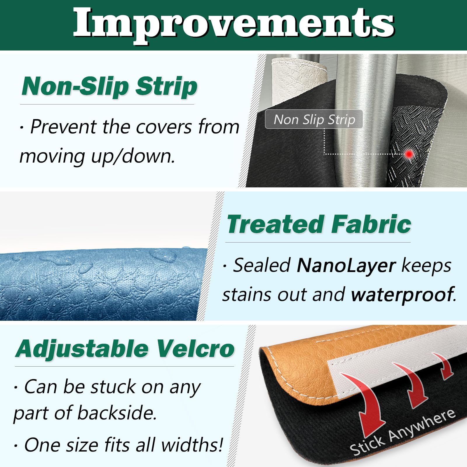 - 【VARIOUS SIZES & INSTALLATION】 - 5 pieces in total, 3 large handle covers (14.7” long) and 2 short handle covers (7.9” long / 6.3” long). The large ones are Non-Slip design, they are very easy to place on your handles and won't move.