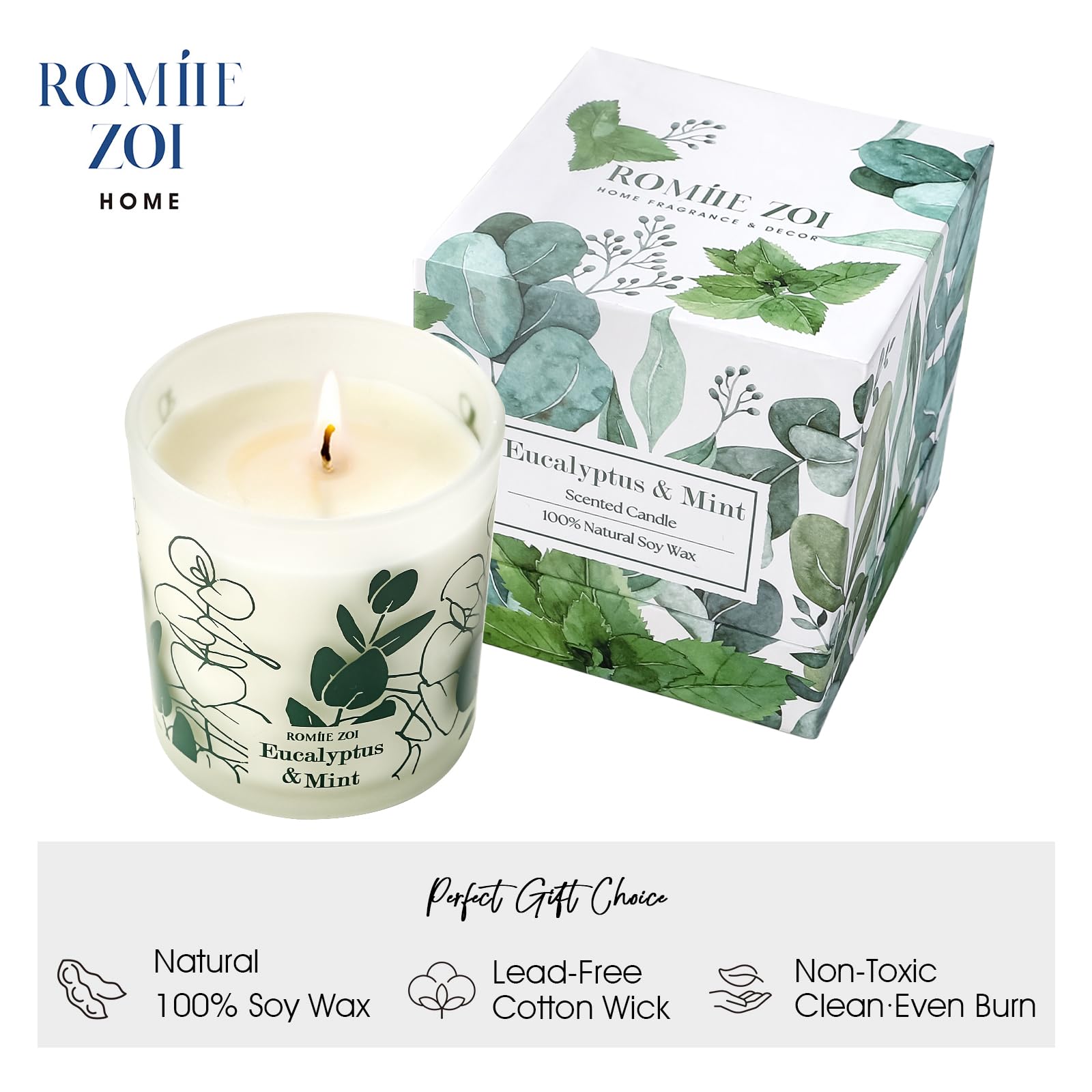 ROMIIE ZOI Scented Candle - Eucalyptus & Mint - 6oz Aromatherapy Soy Wax Jar Candle for Home, Gifts for Women - 170g