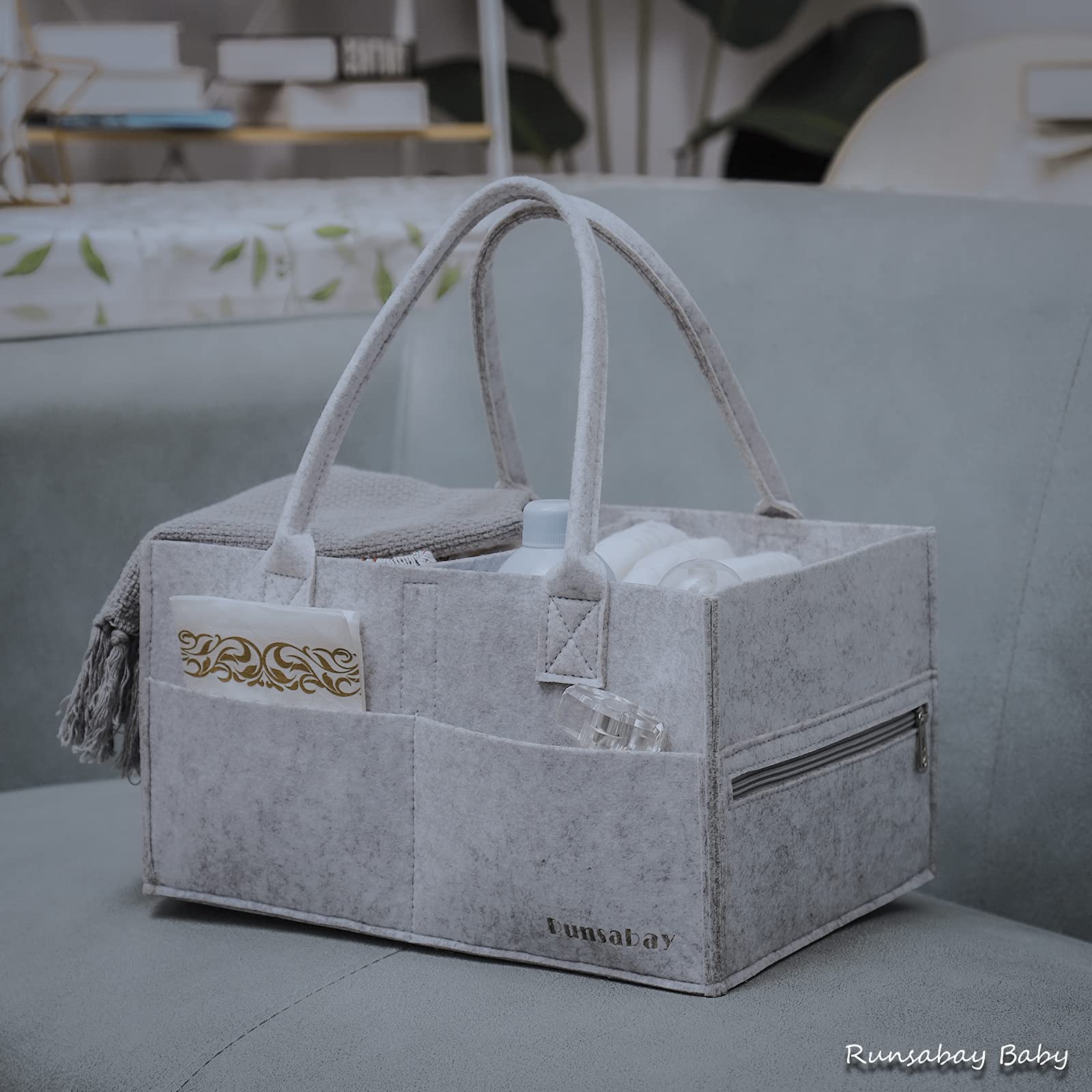 - 【SOFT & SKIN-FRIENDLY MATERIAL】 Made of Skin-Friendly felt which is chic, durable, soft to touch and water-proof. Runsabay baby diaper organizer is a safter choice for newborn babies and high standard you would expect.