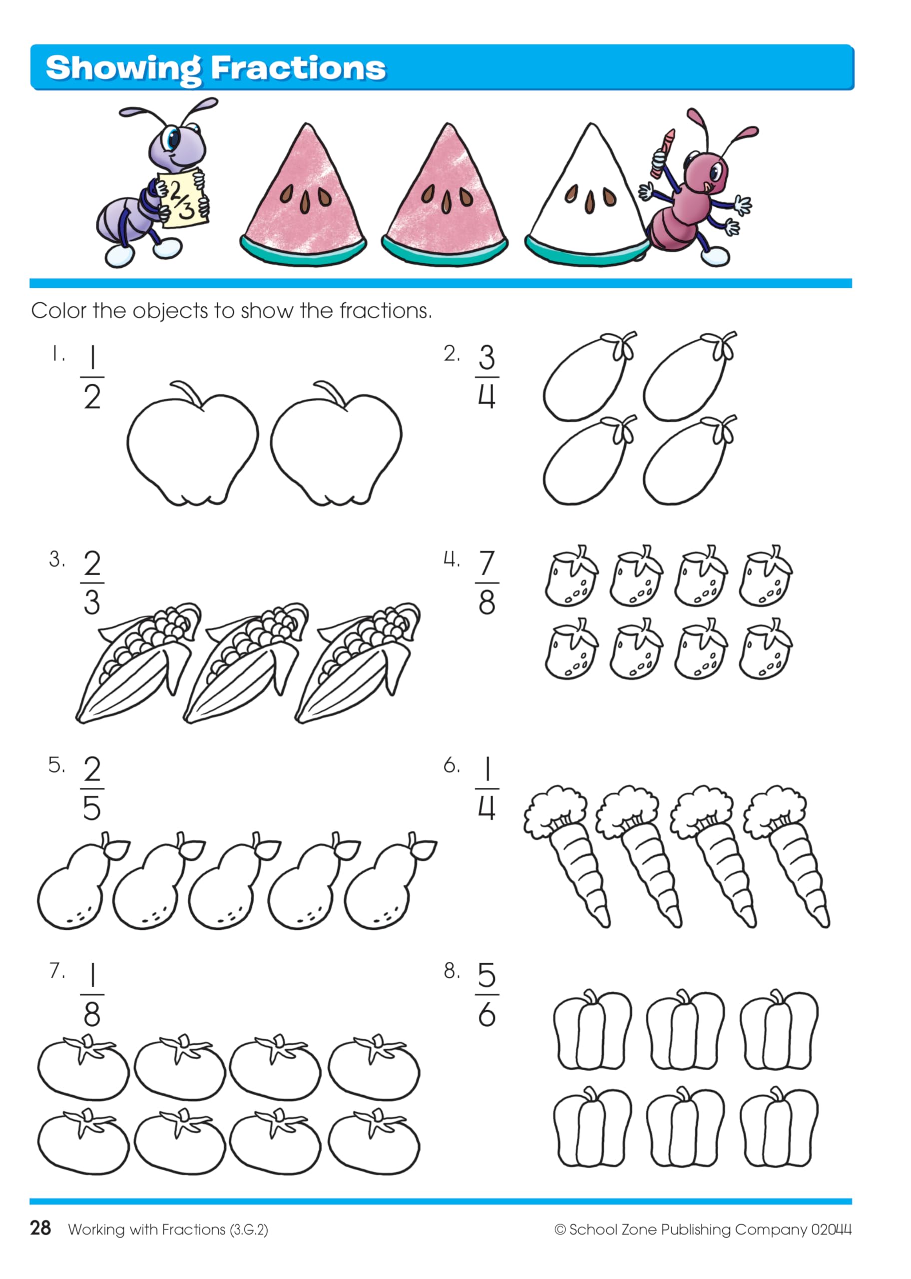 BOOK FEATURES 30 activity pages, 2 answer key pages For ages 6-8 7.75' x 10.75' pages with durable glossy cover Skills for everyday living include working with money, understanding fractions, telling time, and more! Real-world examples help make kids want to learn Follows both NCTM and Common Core standards Find at-a-glance skill focus listed at the bottom of each page