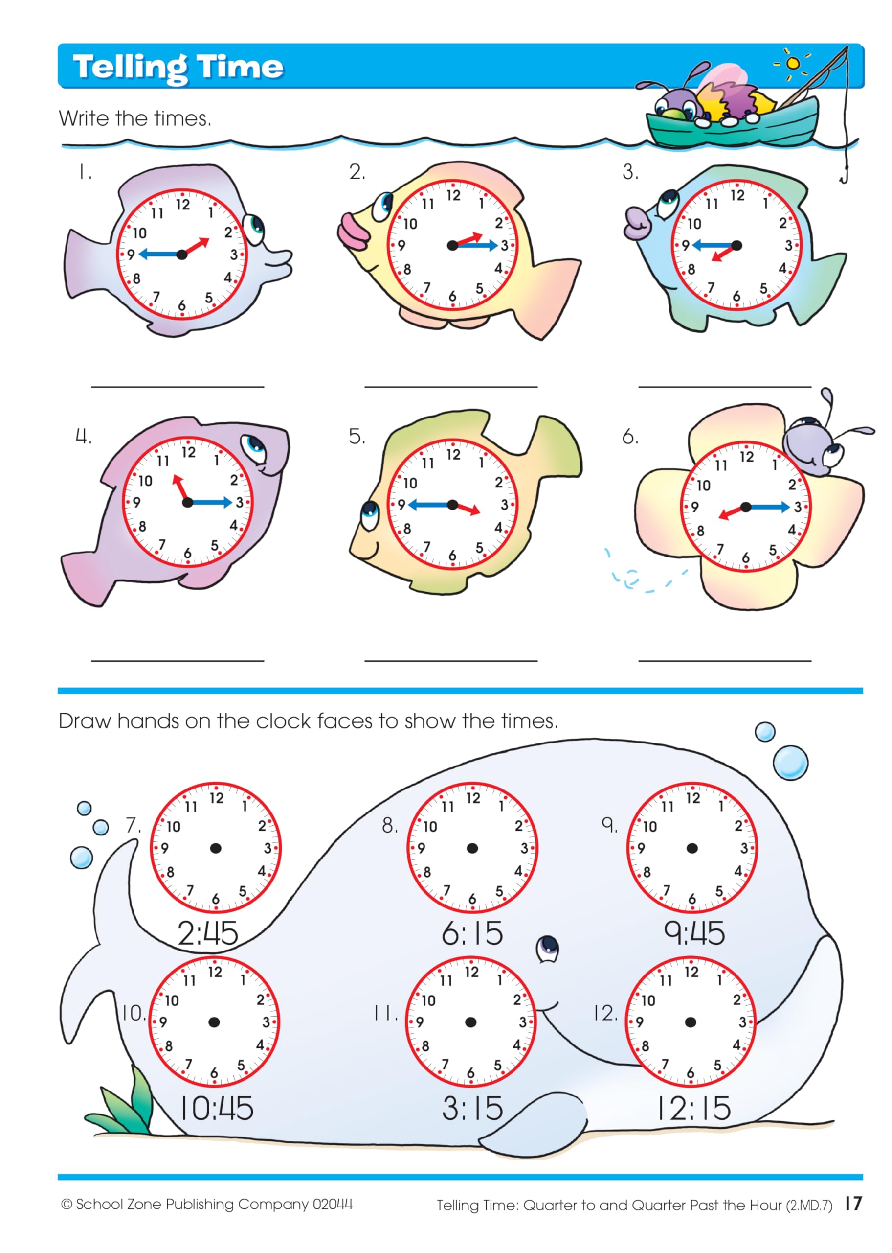 School Zone Time, Money & Fractions Workbook: 32 Pages, 1st Grade, 2nd Grade, Adding Money, Counting Coins, Telling Time, Ages 6 to 8 (I Know It! Book Series)