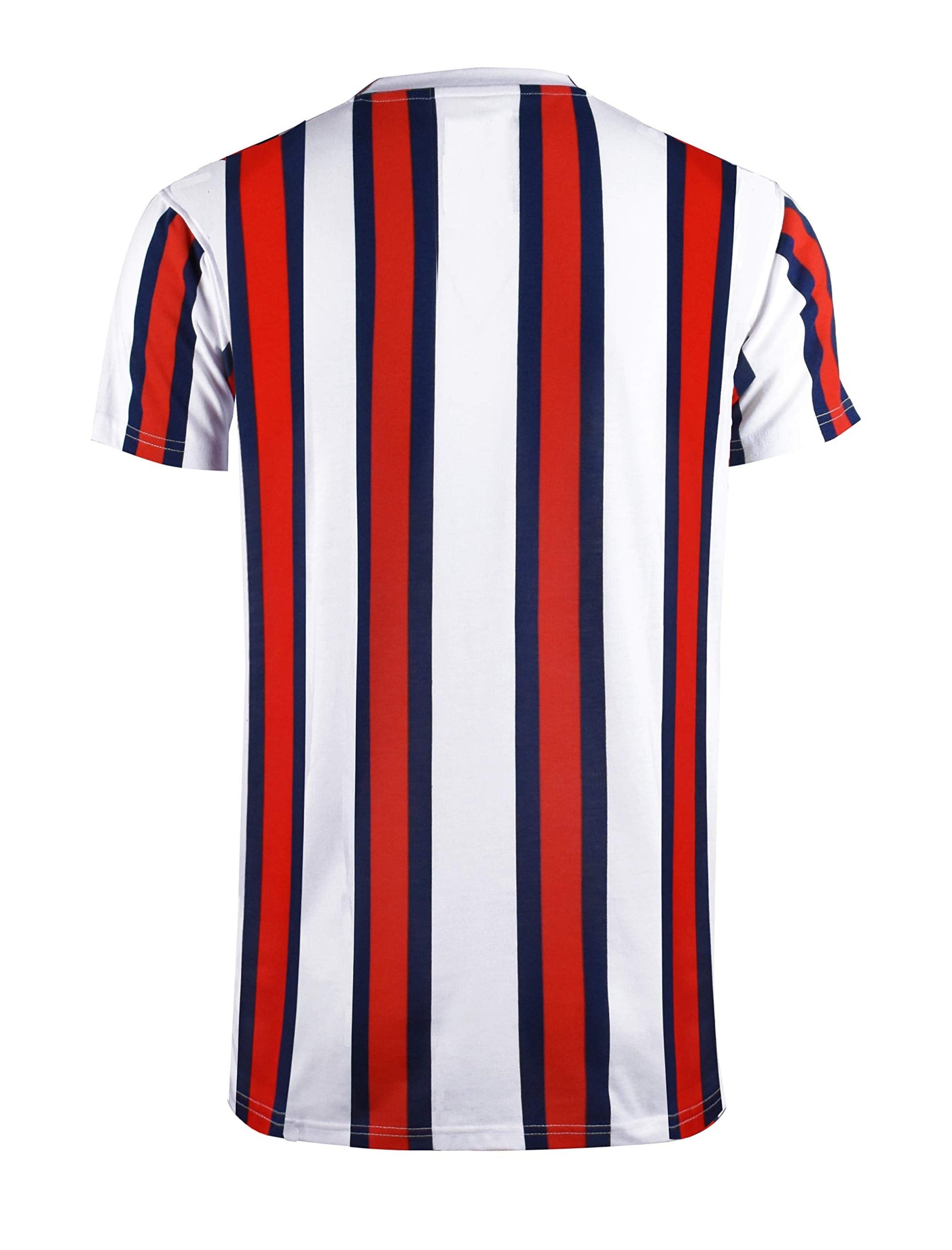 SCREENSHOTBRAND-S11904 Mens Hipster Hip-Hop Premium Tee - Luxury Longline Vertical Stripe Print T-Shirt-White/Stripe-Large
