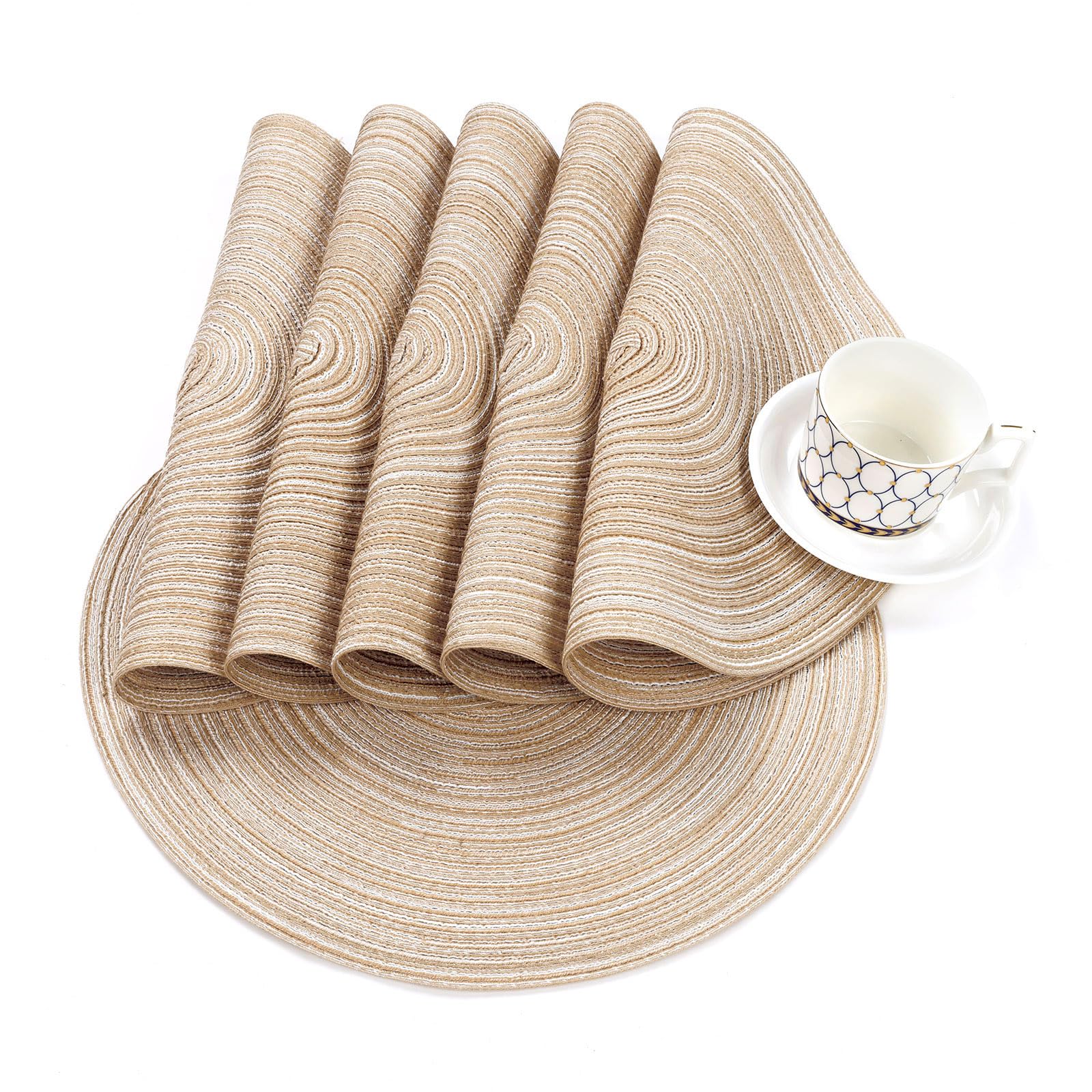 SHACOS 15 inch Round Braided Placemats Set of 6 Non Slip Heat Resistant Round Table Mats Washable Place Mats for Dinner Party Table Decoration (Beige, 6)