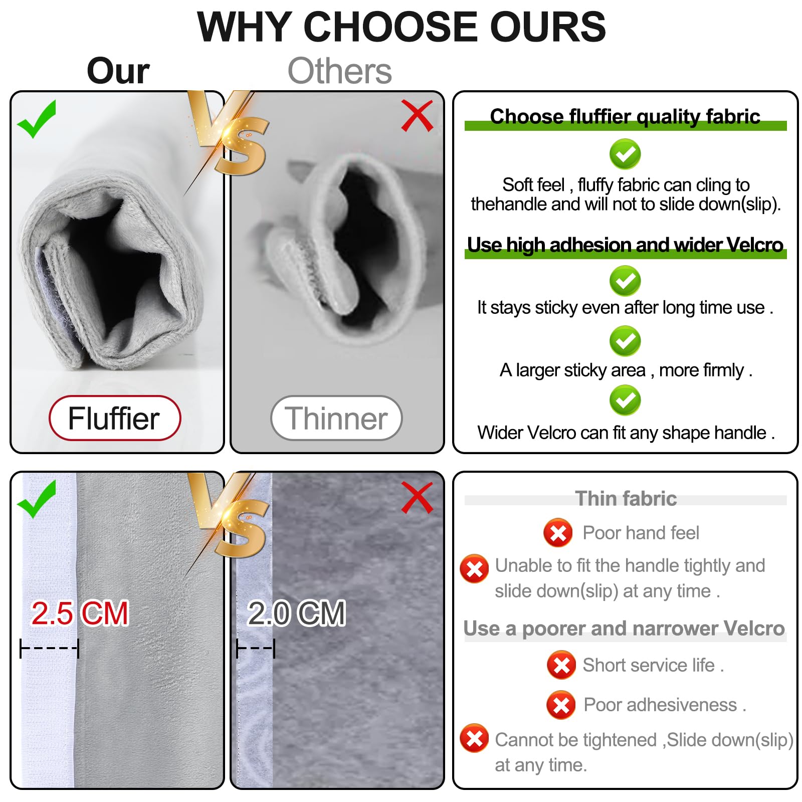 - KEEP TIGHT ON THE HANDLE AND WILL NOT SLIDE: The material is stretchy and when you cover it on the handle, it can keep tight on the slippery stainless steel handle surface, there is Velcro on the edge to help it close well. The Material is soft and it can be used on round or other shape of handles.