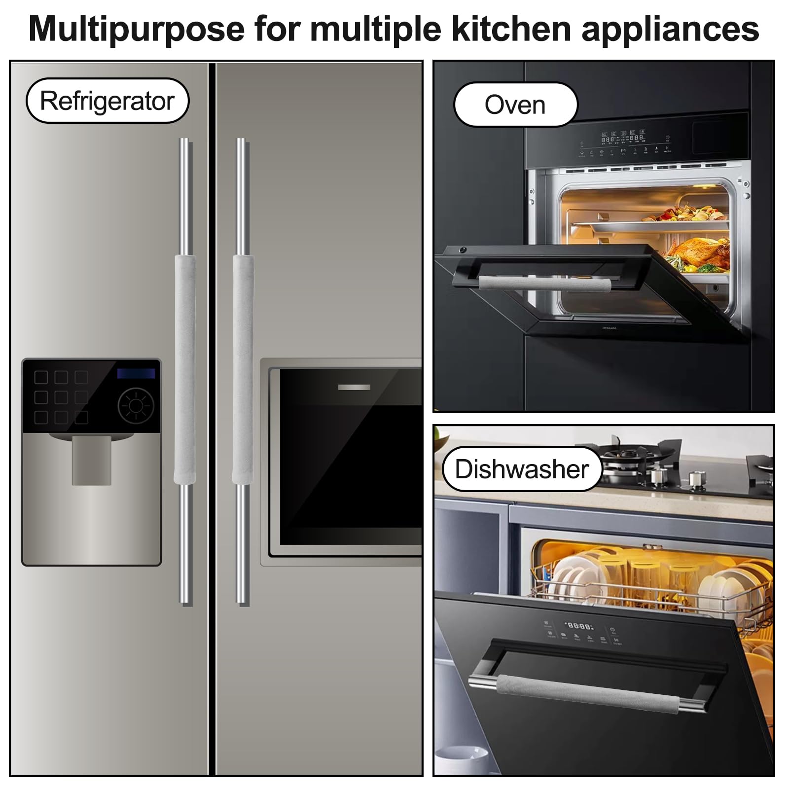 - KEEP HANDLE CLEAN: These cover is designed to keep kitchen appliances handle off from stain, dirty kid hands, water and fingerprints, it can be used on handle of fridge, microwave, oven, kitchen cabinet, dish washer and other appliances.