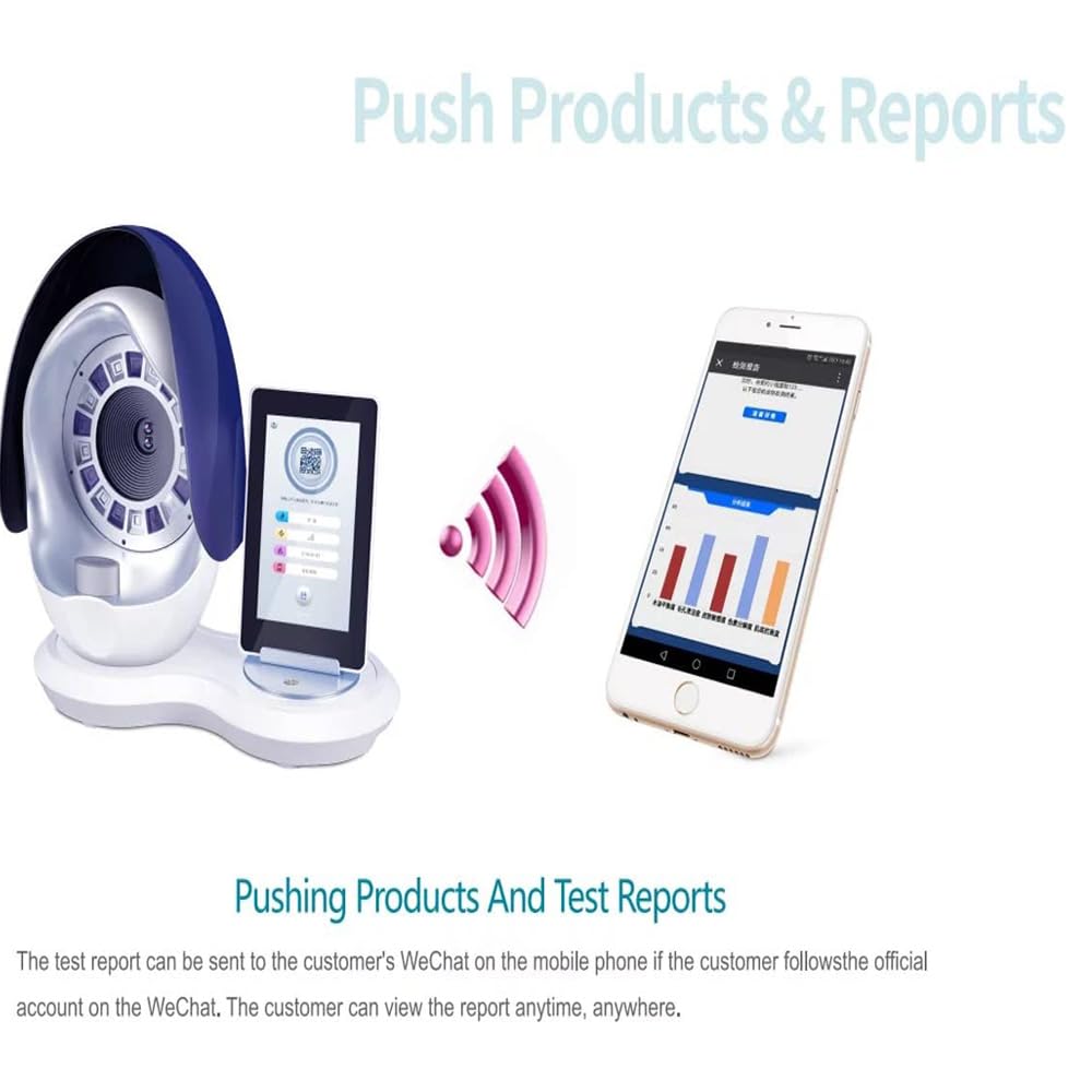 - Machine principle- 3d facial skin analyzer device skin moisture and oil detector, by scanning the whole face, it can diagnose the face and perform visual analysis with magnified images under the spectrum. Analyzed by medical optical algorithms, it will deliver a medical skin analysis report and provide a set of diagnostic solutions.