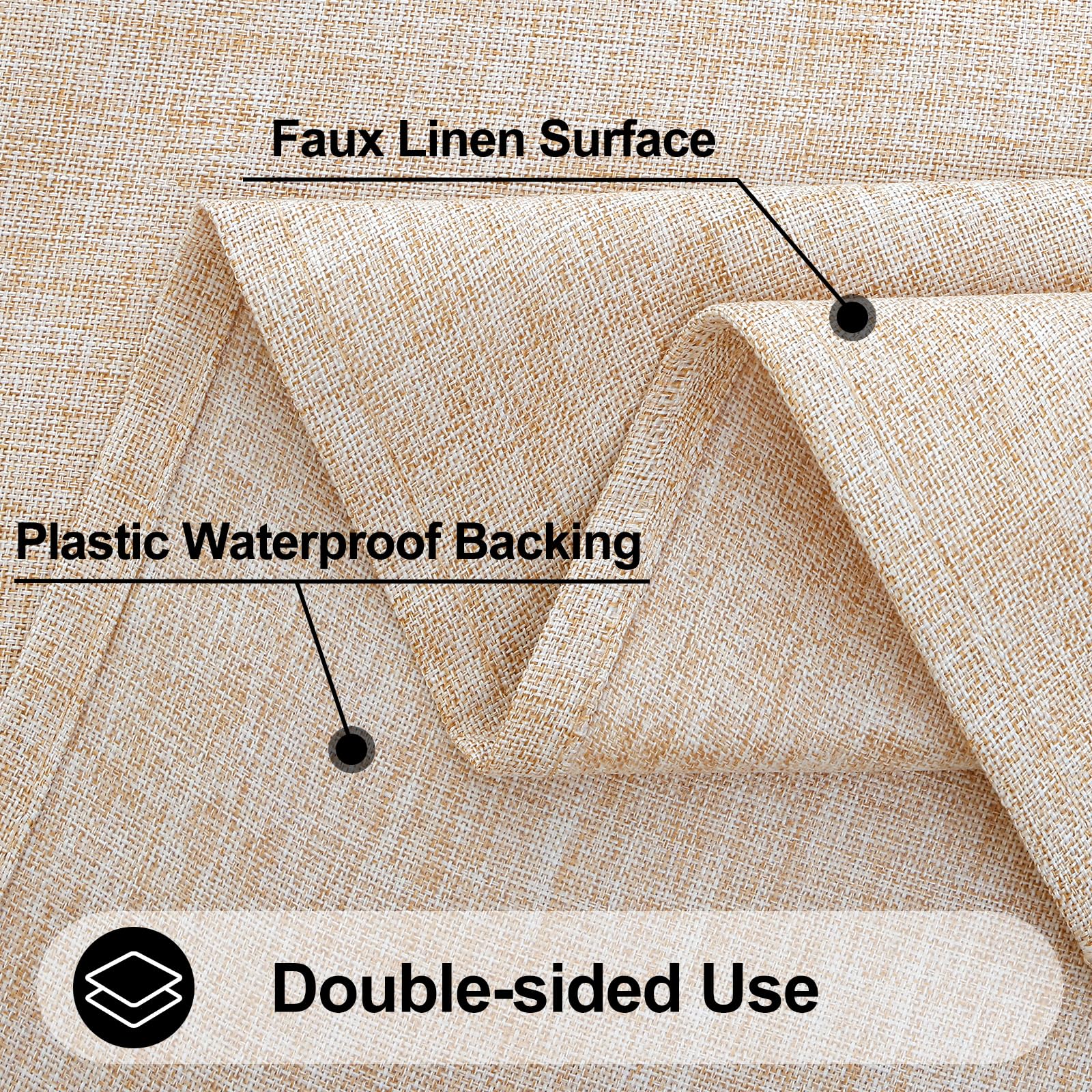 - [Waterproof & Spillproof] The table cloth features a waterproof design that allows liquids to bead up on the surface without seeping through. This effectively protects your table from stains caused by oil, milk, and other spills, keeping it clean and pristine.