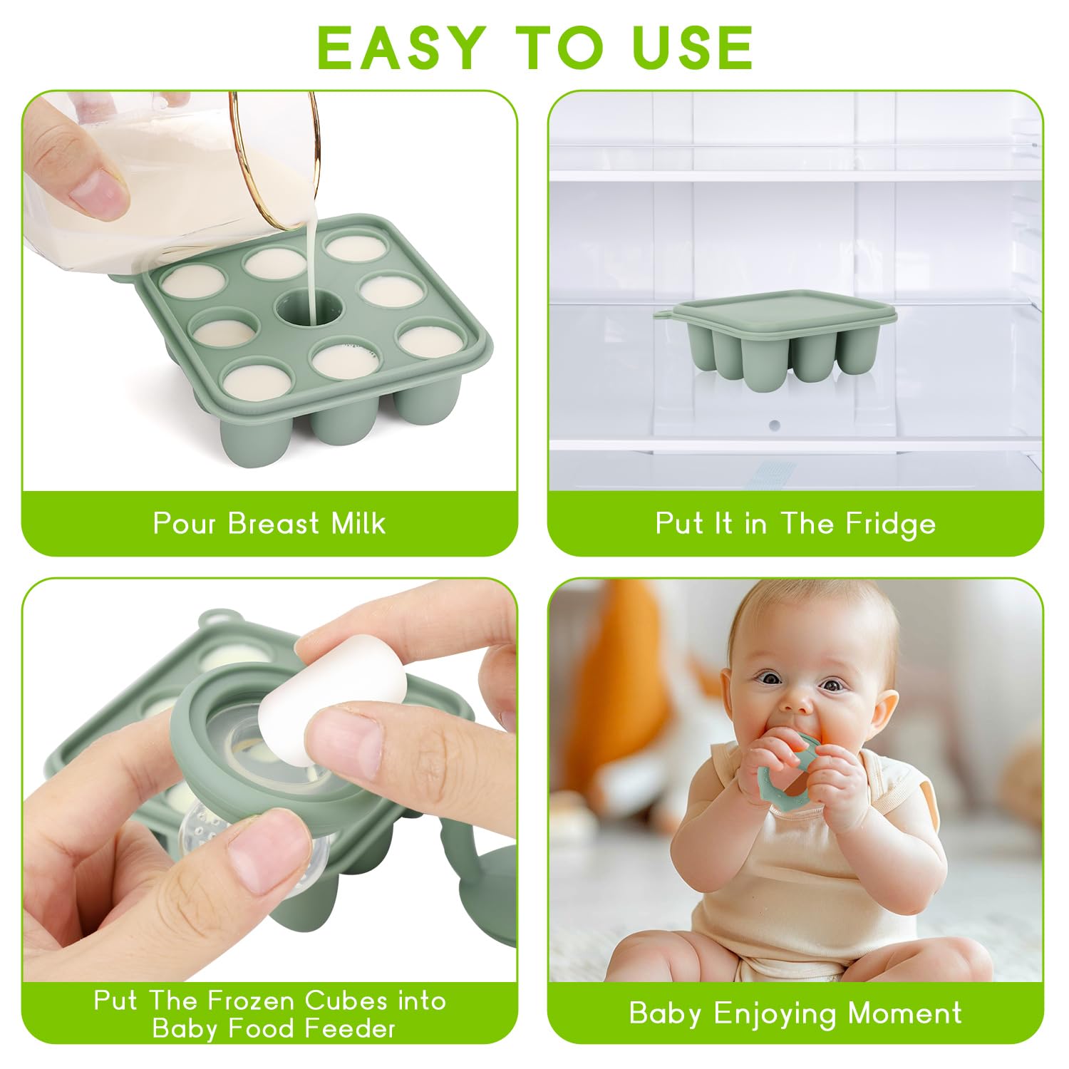 - Silicone Food Feeder Set for Infants- Simplify meal prep with our Silicone Baby Food Freezer Tray. Store milk, purees, and smoothies easily with the included lid to ensure freshness and safety for your baby, and also make your freezer mess-free.