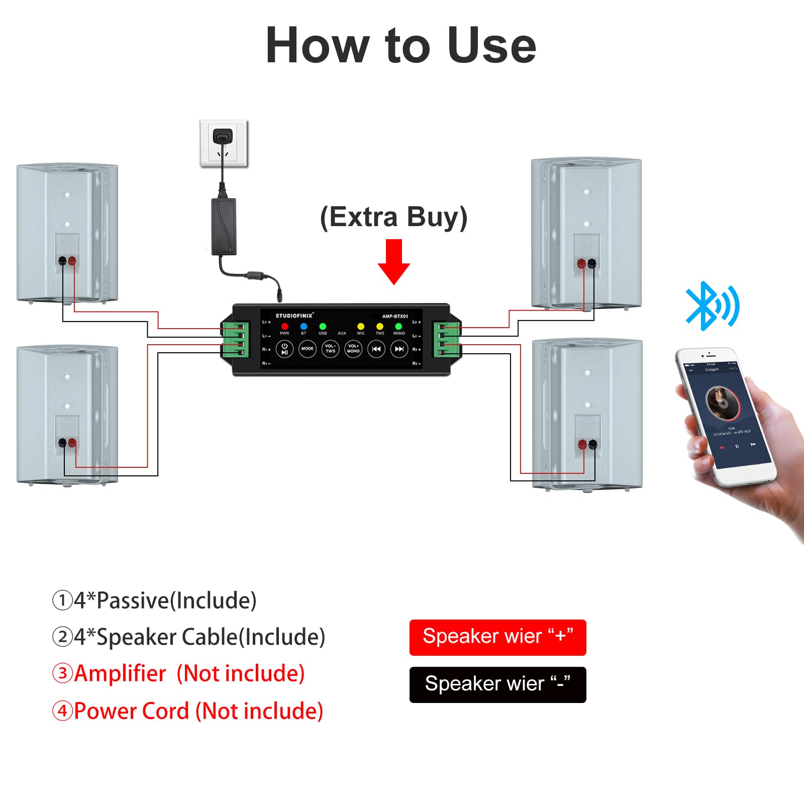- *Notes: The speakers are passive, and the package only includes speaker cables, manual or power cords is not included.
