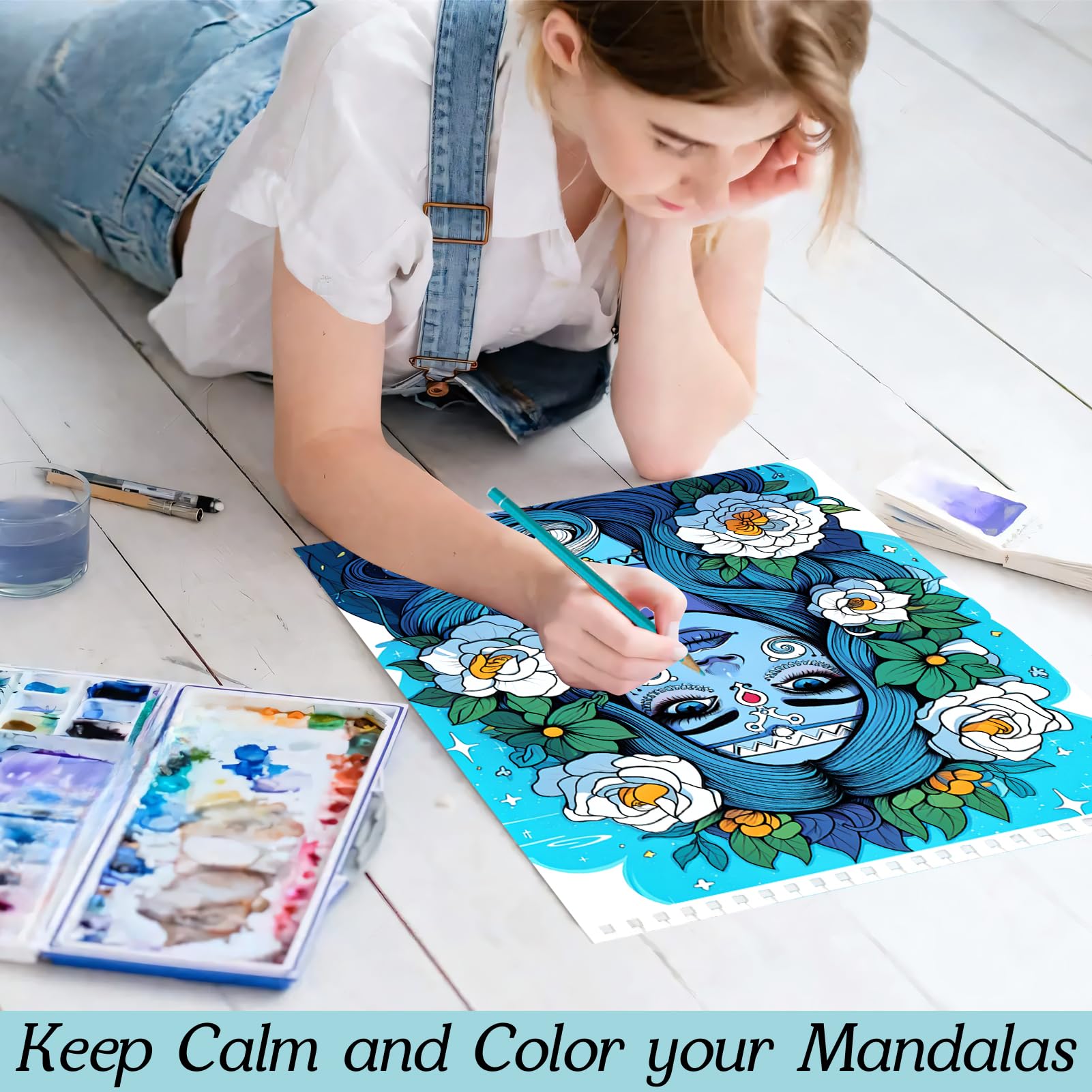 Sugar Skull Coloring Book for Adult Women Relaxation, Spiral Bound, Printed Single-Sided, Adult Coloring Book for Women with 24 Pages Arts and Crafts Sugar Skull Mindfulness Gift