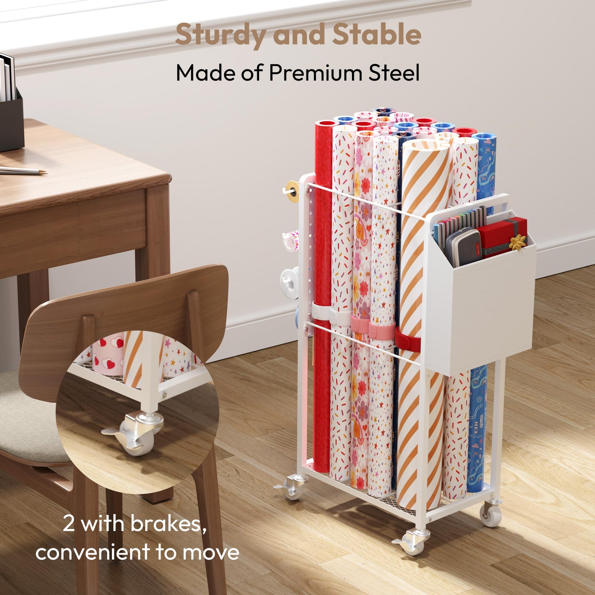 - 【Metal Construction & Lockable Wheels】Sunnacate gift wrap organizer is constructed from durable metal, ensuring long-lasting performance. It features four swivel casters, two of which are lockable, allowing for effortless mobility in your studio, office, or workspace. Stay organized on the go while saving time and energy. Assembly is a breeze with straightforward components and a detailed manual included