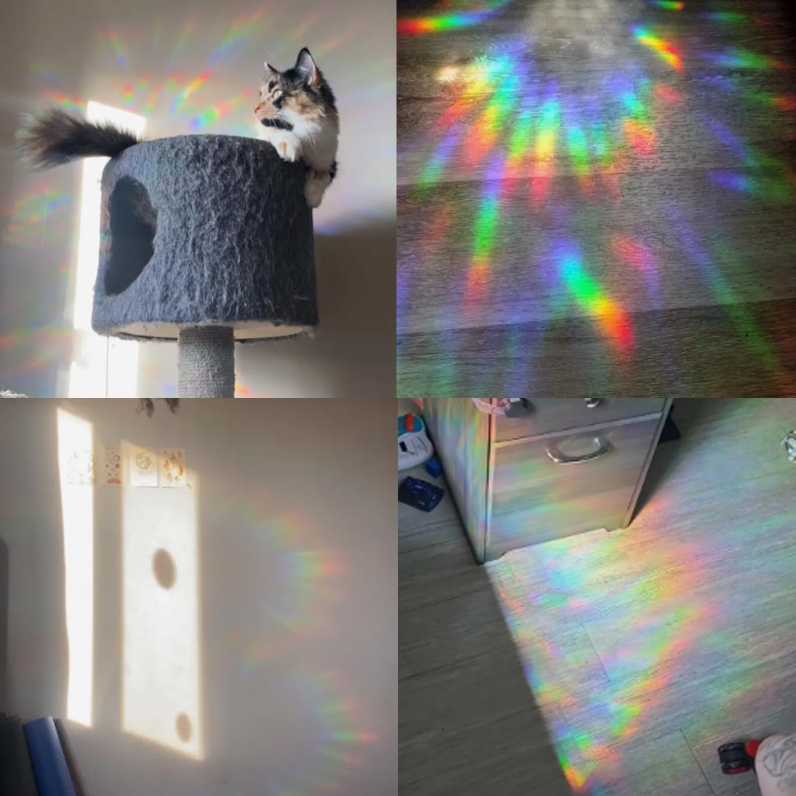- Rainbow Prism Effect: These double-sided window stickers & films display beautiful designs visible from both inside and outside. On sunny days, they fill rooms with vibrant, colorful rainbow prism effects.
