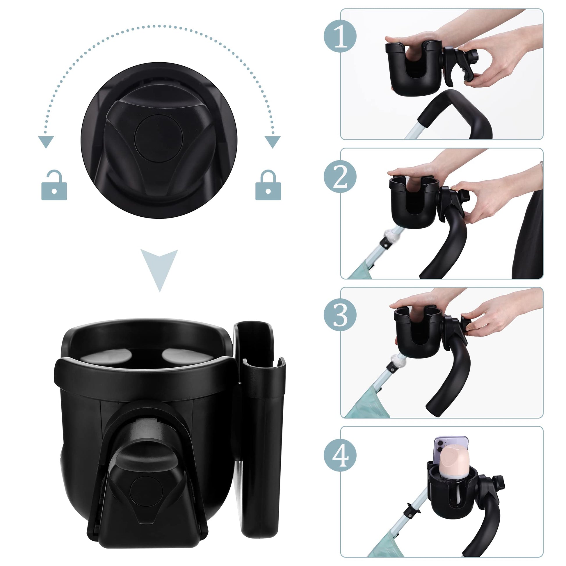 Suranew Universal Stroller Cup Holder, Adjustable Drink Holder with Phone Holder for Baby Stroller, Wheelchair, Walker, Bike, Scooter, Gifts for Family Member.