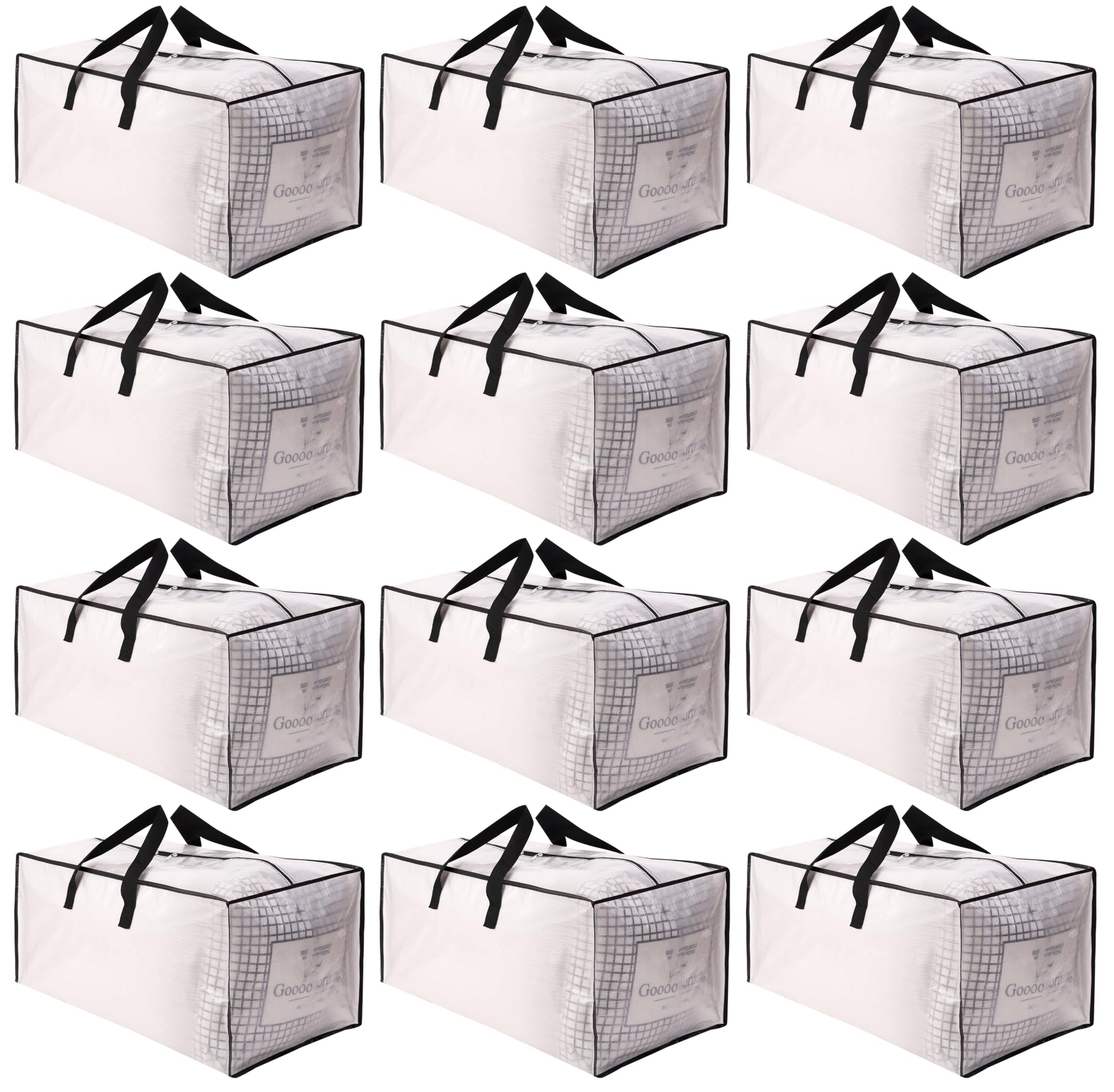 SWEET DOLPHIN 12 Pack Extra Large Moving Bags with Strong Zippers & Carrying Handles, Heavy Duty Storage Tote for Space Saving Moving Storage, Fold Flat, Alternative to Moving Box, Semi-Transparent
