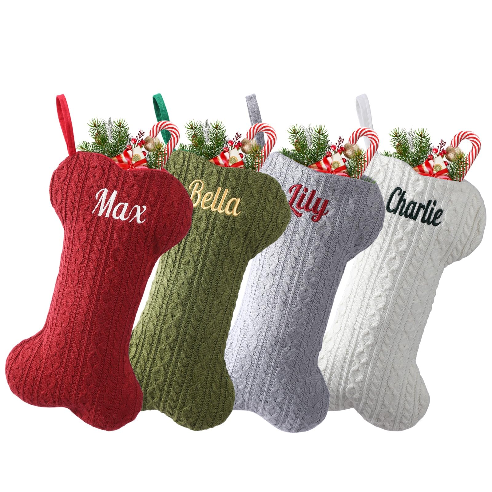 - High-Quality Knitted Dog Stocking:Christmas Stockings with Names are made of soft, thick, stretchy and durable knit with double side knit pattern. Exquisite and clear embroidery craftsmanship makes stockings elegant and special. Knitted Dog Stocking have a sturdy hanging loop for easy display, you can use them for a long time.