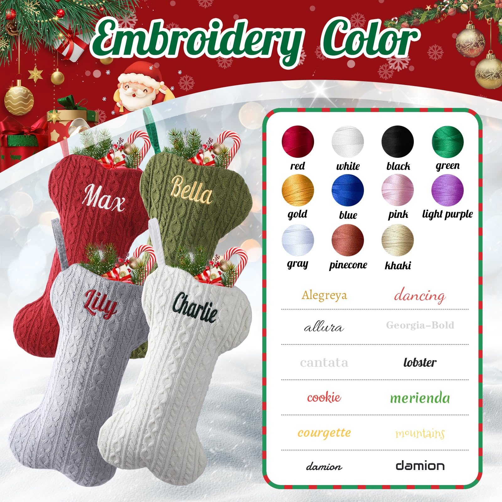 - Personalized Christmas Stocking:Every pets can enjoy personalized Xmas stockings. Personalized with names or any text to capture the warmth of Christmas.Multiple embroidery colors and fonts available.Please click the 'Customize' button to personalize gift for your pets!
